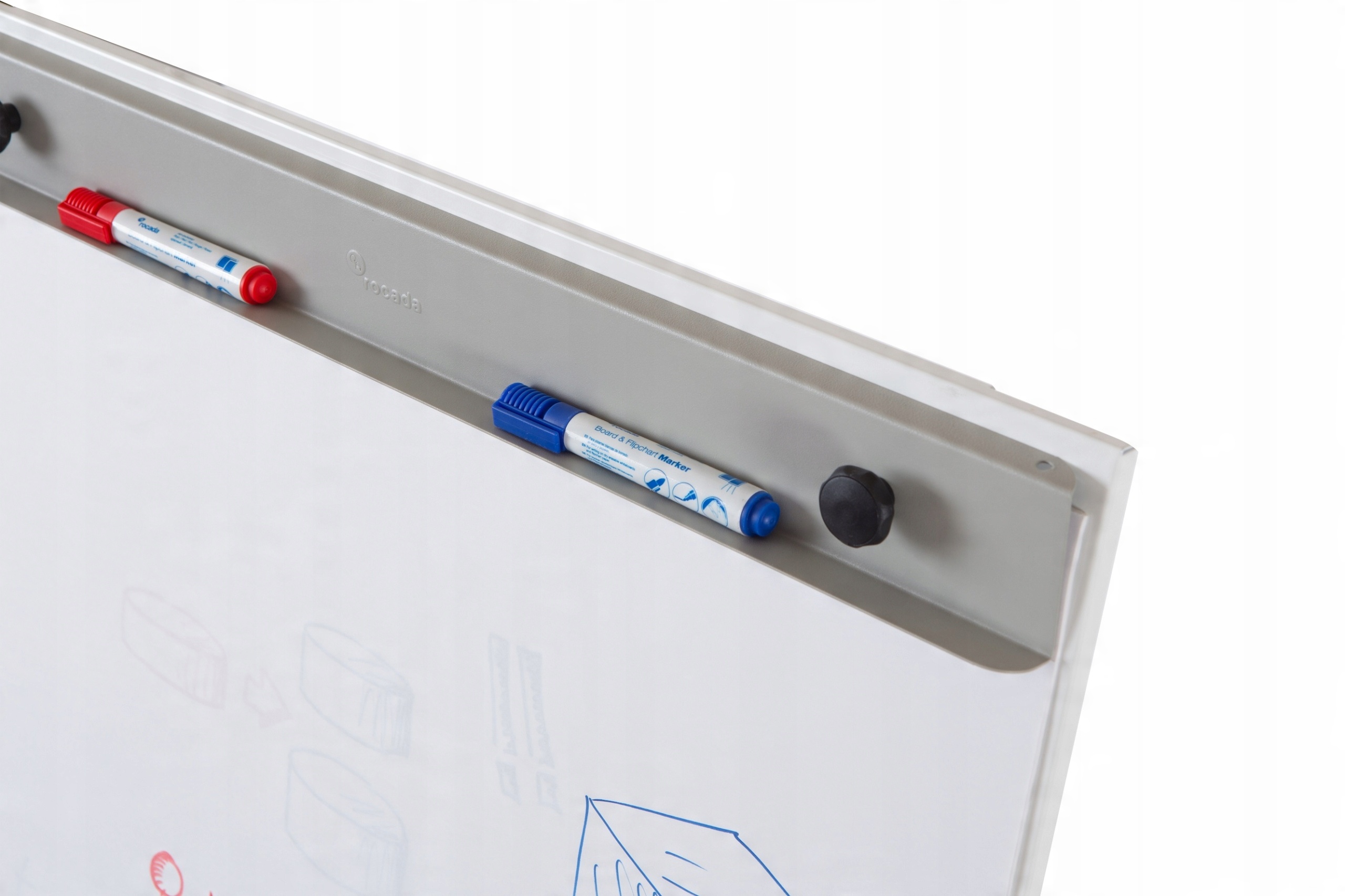 Фліпчарт має затискач для утримання аркуша паперу, який також служить утримувачем маркерів. Відстань між затискними гвинтами 50 см.