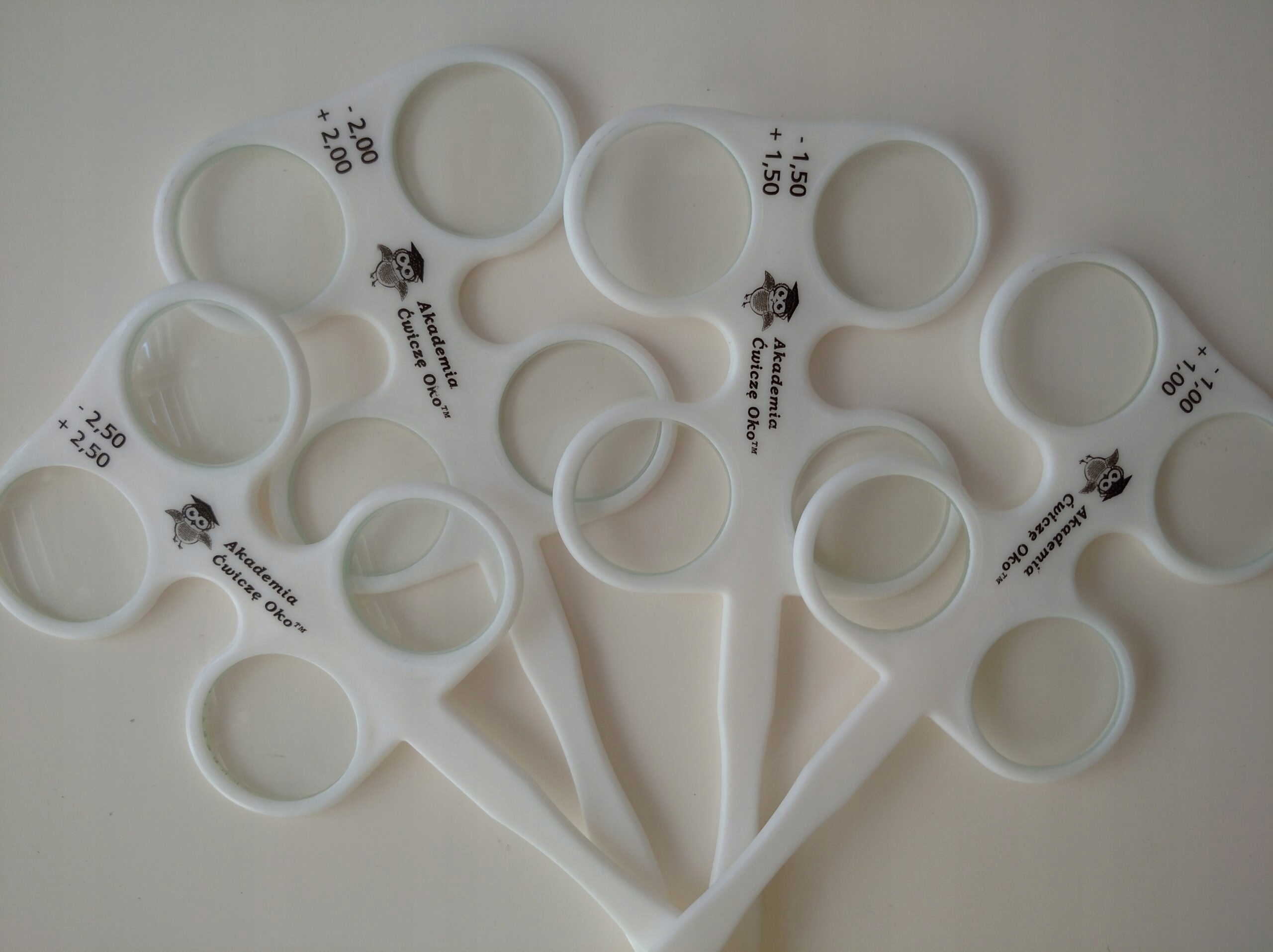 Наші ласти виготовлені з білого гнучкого пластику. На кожному фліппері надруковані значення потужності вставлених лінз, а також позитивні та негативні сторони лінз.