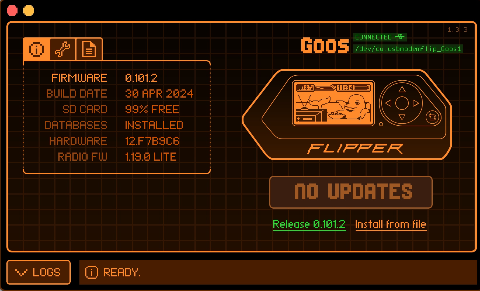 На скріншоті видно прошивку, а також екрани робочого Flipperr.