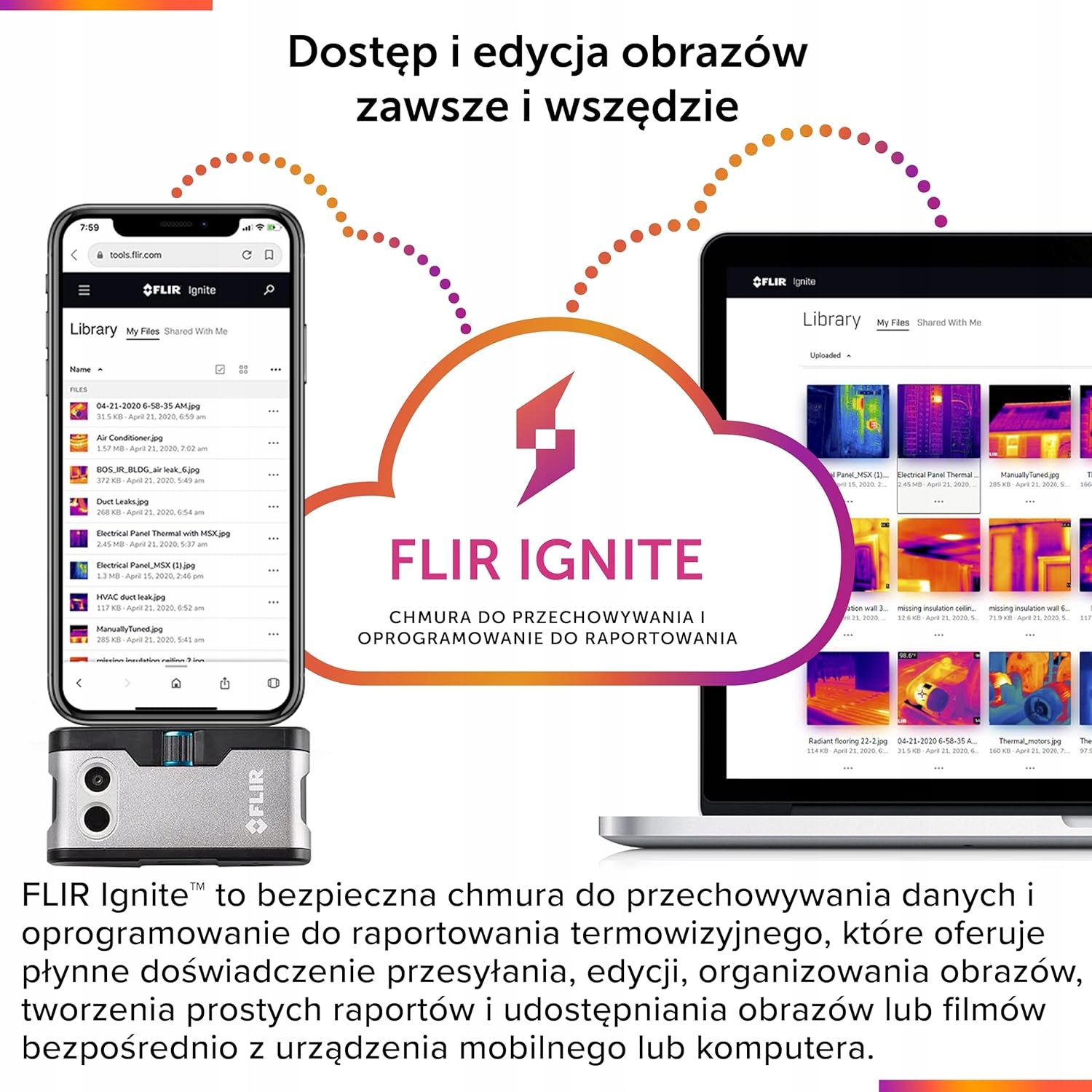 Flir One Pro -це не -еза для всіх інспекторів та виконавців. Поєднання зображень MSX з високою роздільною здатністю з універсальними інструментами вимірювання та оцінки робить Flir One Pro незамінним супутником. Завдяки новому Pro Pro, проблеми, які раніше були невидимими, можна знайти швидше, ніж будь -коли раніше. Просто підключіть Flir One Pro до iPhone або планшета за допомогою системи iPados, і камера перетвориться на теплову камеру. Завдяки найкращої термічної роздільної здатності у своєму класі та революційній обробці зображення MSX та Vividir, Flir One Pro дозволяє побачити більше деталей та підтвердити виправлення. Незалежно від того, чи йдеться про будинки, автомобілі чи електричні консолі, вирішення проблем, пов’язаних із опаленням, вентиляцією, кондиціонуванням або виявленням пошкоджень, спричиненими водою, новий Flir One Pro - це інструмент, який ніхто не повинен бути позбавлений. Flir One Pro - це незамінний гаджет для кожного FLIR One Pro Toolbox, показує проблеми, невидимі неозброєним оком. Обробка та запис зображень MSX та Vividir Free Flir One з професійними порадами. Виявляє теплові об'єкти з відстані до 35 м. Flir One Pro вимірює температуру в будь -який час у діапазоні від -20 ° до 400 ° С. Революційний роз'єм OneFit з регулюванням висоти забезпечує можливість підключення Flir One навіть за допомогою корпусу. Відкрийте для себе додаткові функції, такі як Flir One Panorama ™, Flir One Timelapse ™ та Flir One Clopum ™. Теплова візуалізація частин через програму Flir One в соціальних мережах. Vividir ™ - це найновіша та найефективніша обробка зображень від FLIR, що забезпечує реальну роздільну здатність у Flir One Pro для різких зображень з високим рівнем деталізації.
