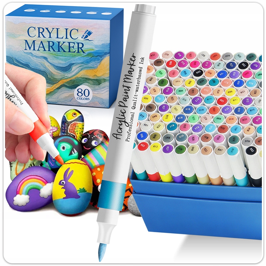 ✅ Набір з 80 акрилових маркерів - художніх ручок для малювання - Каміння, одяг, дерево, скло, пластик, кераміка, папір і метал