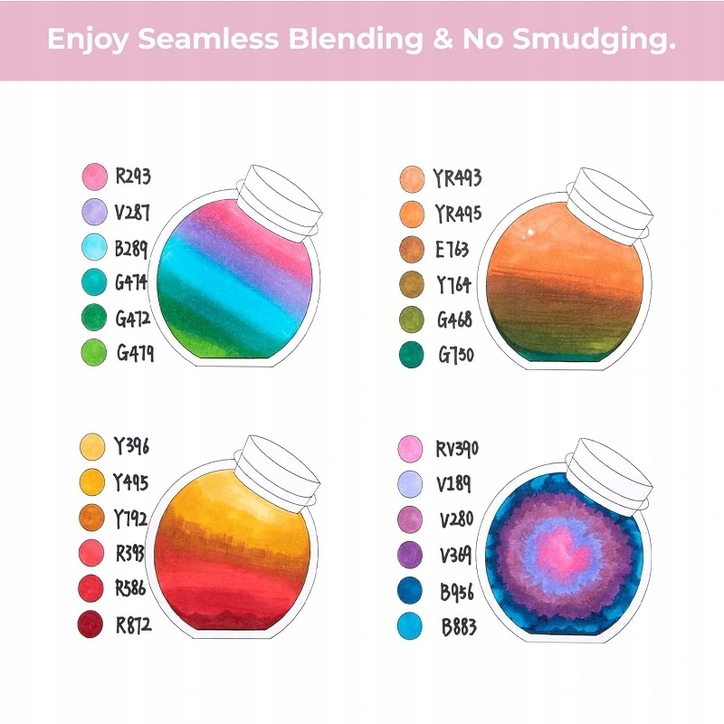 Кольори добре поєднуються один з одним, ви можете красиво їх розташувати, а також можете використовувати блендер, що входить у комплект, щоб досягти делікатних переходів і затінення.