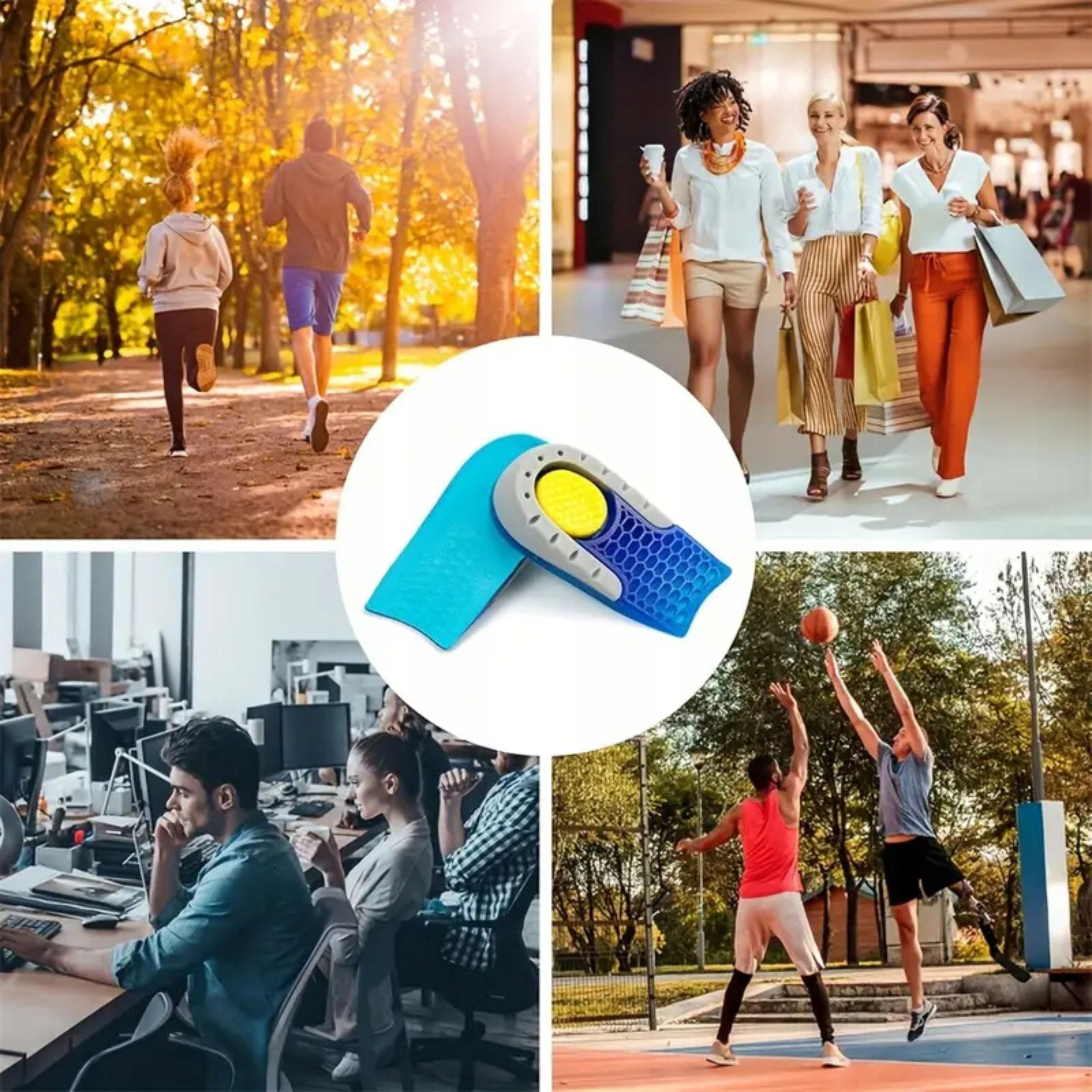 підлога - це гелеві вставки, присвячені людям, які страждають від спірної п’яти та інших захворювань ніг, які викликають біль і дискомфорт. Вставки мають профільну форму, яка допомагає підняти п’яту і зменшити тиск на підошву стопи. Виготовлений з м'якого гелю, який під час використання зменшує навантаження на п'яту і піднімає довжину стопи.