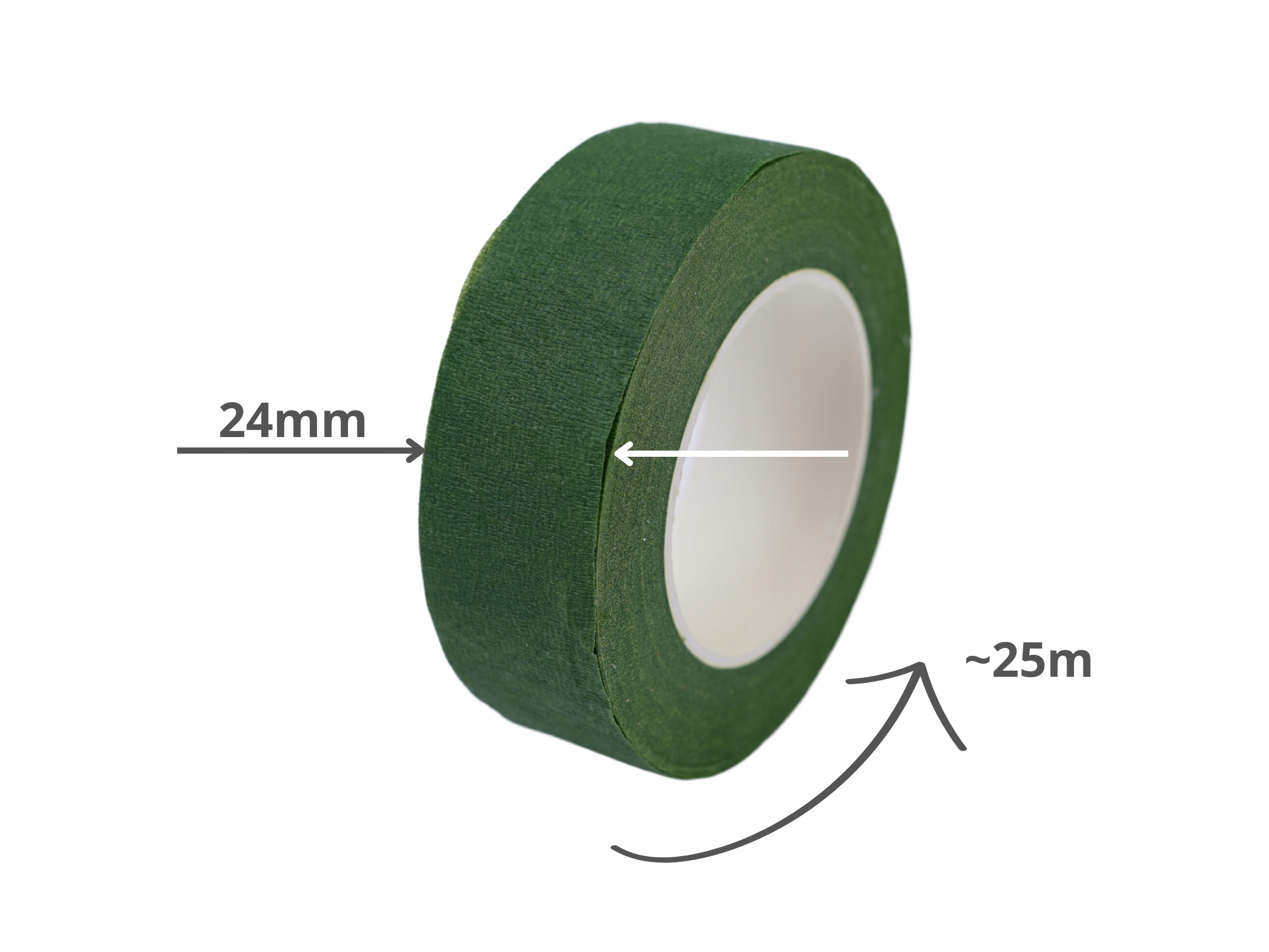 Зелена квіткова маскувальна стрічка доступна в рулонах по 25 м. Наш продукт походить від відомого виробника, що гарантує його високу якість і довговічність.