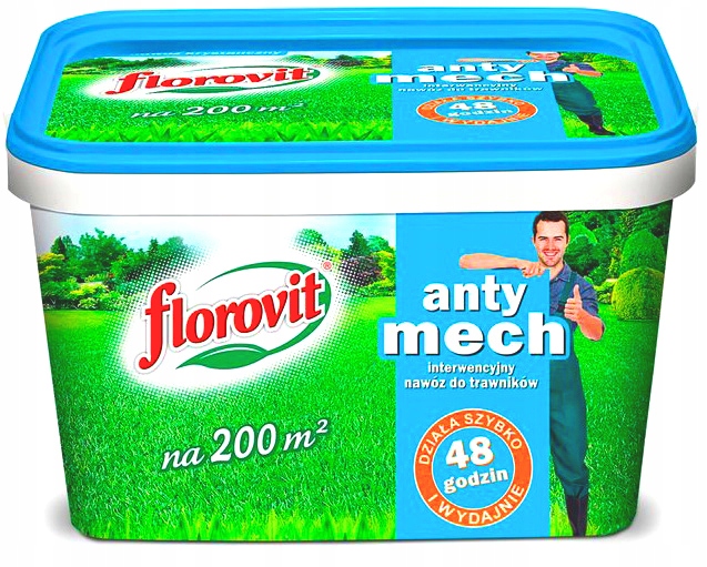 Добриво для газону Florovit ANTY MOSS intervention, дуже ефективне та дуже ефективне, призначене для всіх типів багаторічних газонів з мохом. Добриво підтримує пишну зелень, добре забарвлений, щільний і компактний газон, і в той же час ефективно позбавляє від непотрібного моху. Діє дуже швидко, перші ефекти через 48 годин після застосування.