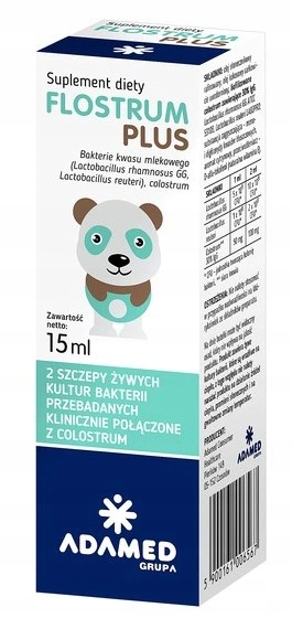 Флострум Плюс — дієтична добавка у формі суспензії, яка містить живі культури бактерій Lactobacillus rhamnosus GG і Lactobacillus reuteri та молозиво, стандартизоване за вміст імуноглобулінів G (30 % IgG). Він доповнює фізіологічну мікрофлору шлунково-кишкового тракту, благотворно впливаючи на його функціонування та підтримуючи імунітет.