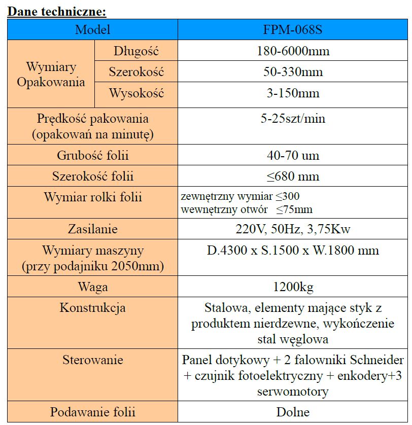 FPM-068S підходить для великих і важких продуктів, для продуктів нерегулярної довжини, таких як овочі, фрукти, а також для тортів, печива, хліба , солодощі, медичні вироби, мистецтво. щоденне використання, лотки тощо.