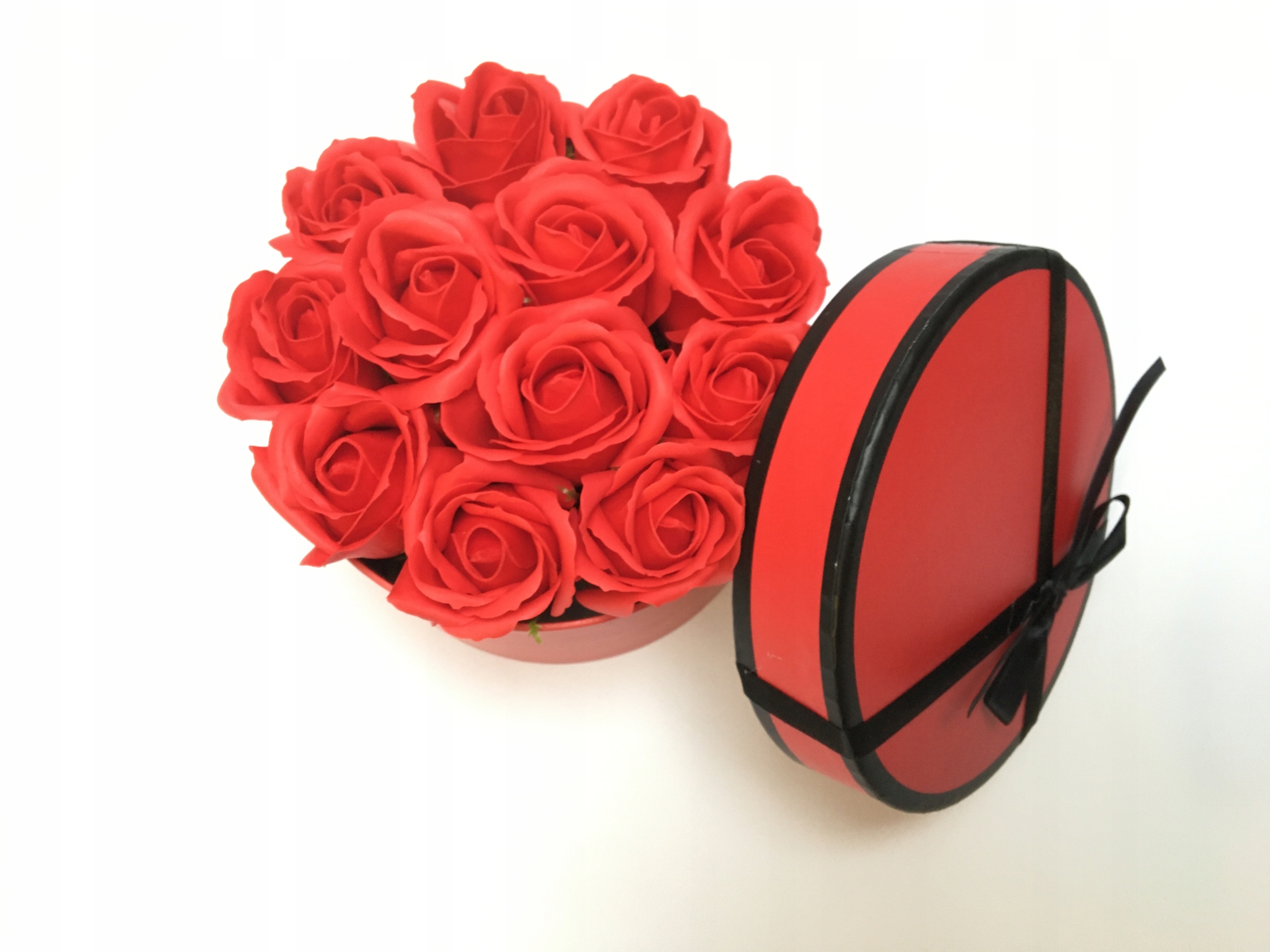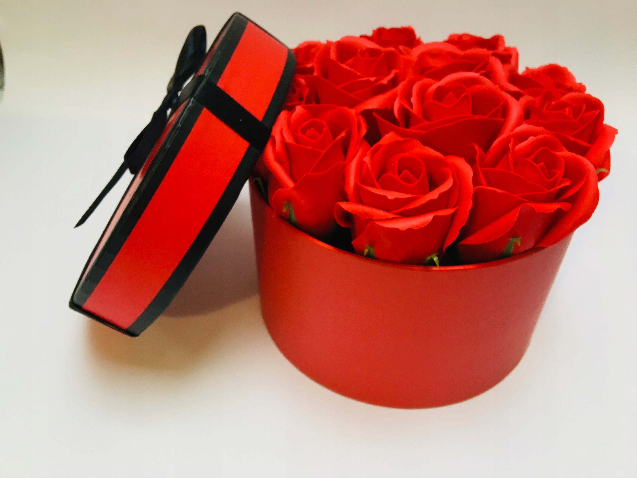 ЗАПАШНІ МИЛЬНІ КВІТИ В КОРОБЦІ - ЧЕРВОНІ ТРОЯНДИ В КОРОБЦІ , круглої форми