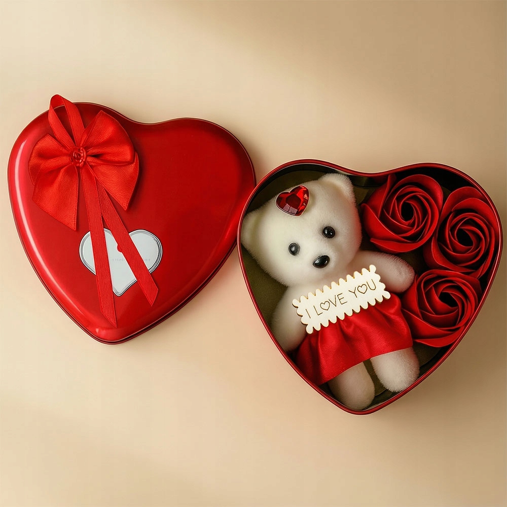 ❤️ Романтичний плюшевий ведмедик із мильними трояндами у коробці у формі серця ❤️