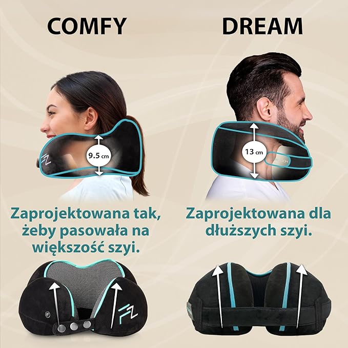 Подушка FLOWZOOM Comfy має тонку, сплощену спинку, яка зменшує натиск голови вперед і підтримує природне положення для сну під час тривалих перельотів або поїздок на автомобілі.