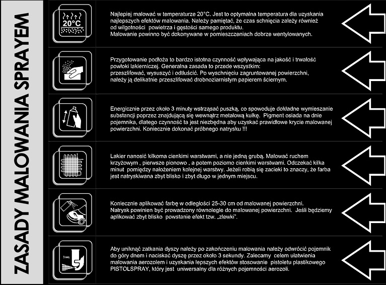 Ідеально підходить для роботи на поверхнях: асфальт, дерево, метал, бетон, скло, камінь. Ідеально підходить для роботи безпосередньо у складних погодних умовах. Активі, археологічні, зберігання, для позначення небезпечних місць, для роботи, пов’язаних з архітектурою зелених районів, для роботи в лісовому та деревному вирізанні. Для фарбування більшої кількості поверхонь (не тільки для маркування) ми повинні використовувати білу основу для отримання більш інтенсивного кольору та додатково захисту від безбарвного лаку Deco. 25 ° C. P>