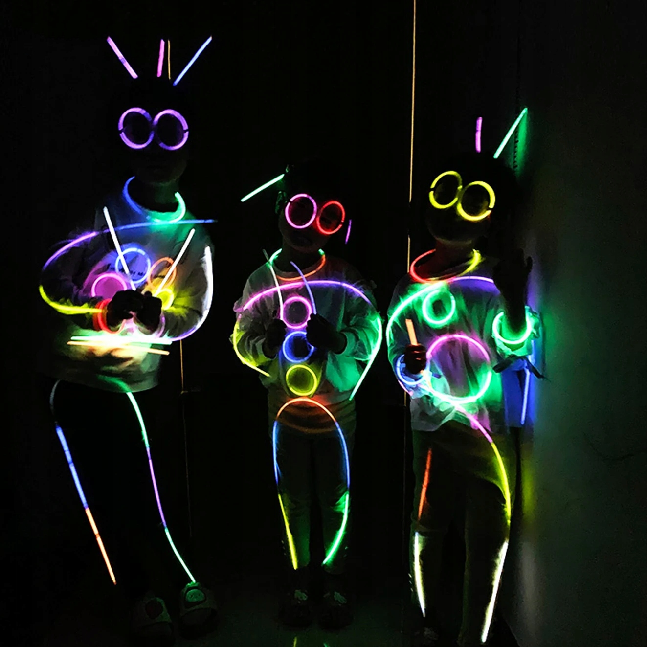 Світяться в темряві святкові приналежності для дітей і дорослих, веселі барвисті палички своїми руками як іграшки для використання вдома чи на вулиці. Підходить для оформлення дня народження, вечірки, святкового приладдя, заходів на відкритому повітрі, карнавалу, кемпінгу, Хелловіна, Різдва, дискотеки чи вечірки.