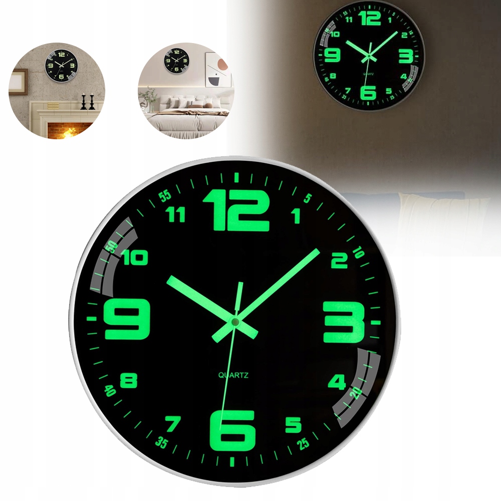 Флуоресцентний настінний годинник, що світиться в темряві. Класичний настінний годинник