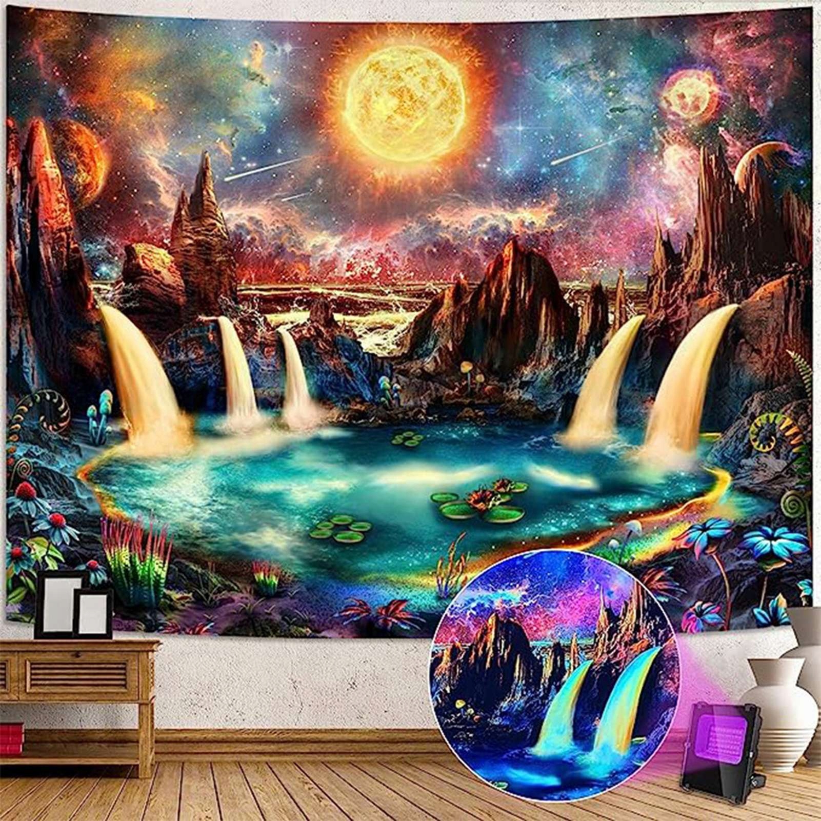5. [Легке підвішування]: флуоресцентний декоративний гобелен легкий, його легко повісити за допомогою гачків, цвяхів або затискачів, його можна легко очистити, що гарантує, що він залишатиметься яскравим протягом тривалого часу.