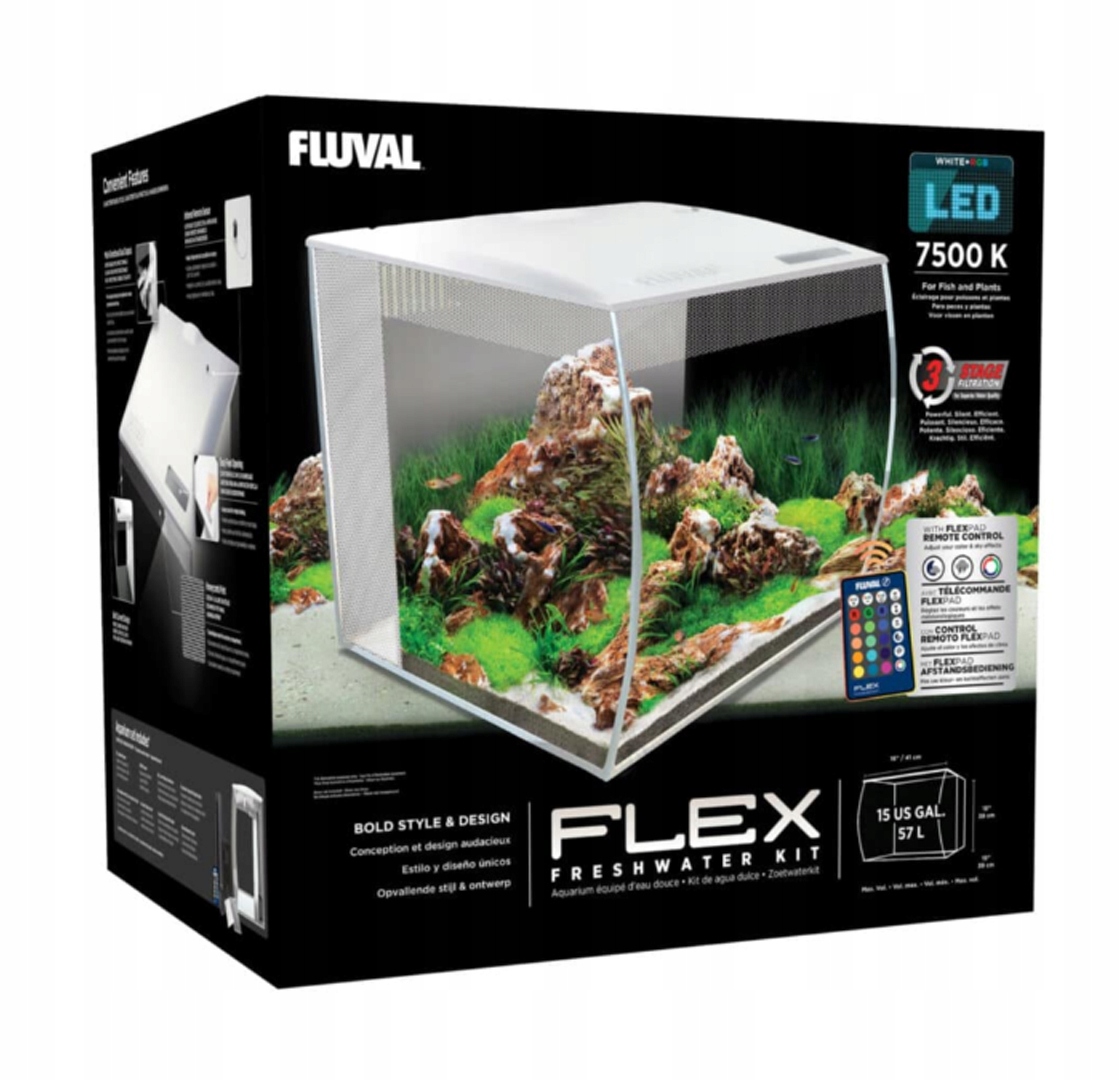 Fluval Flex пропонує не тільки сучасний стиль із характерною вигнутою передньою частиною, але також оснащений потужними мульти- фільтрація сцени та чудове світлодіодне освітлення, яке дозволяє користувачеві регулювати кілька налаштувань за допомогою пульта дистанційного керування.