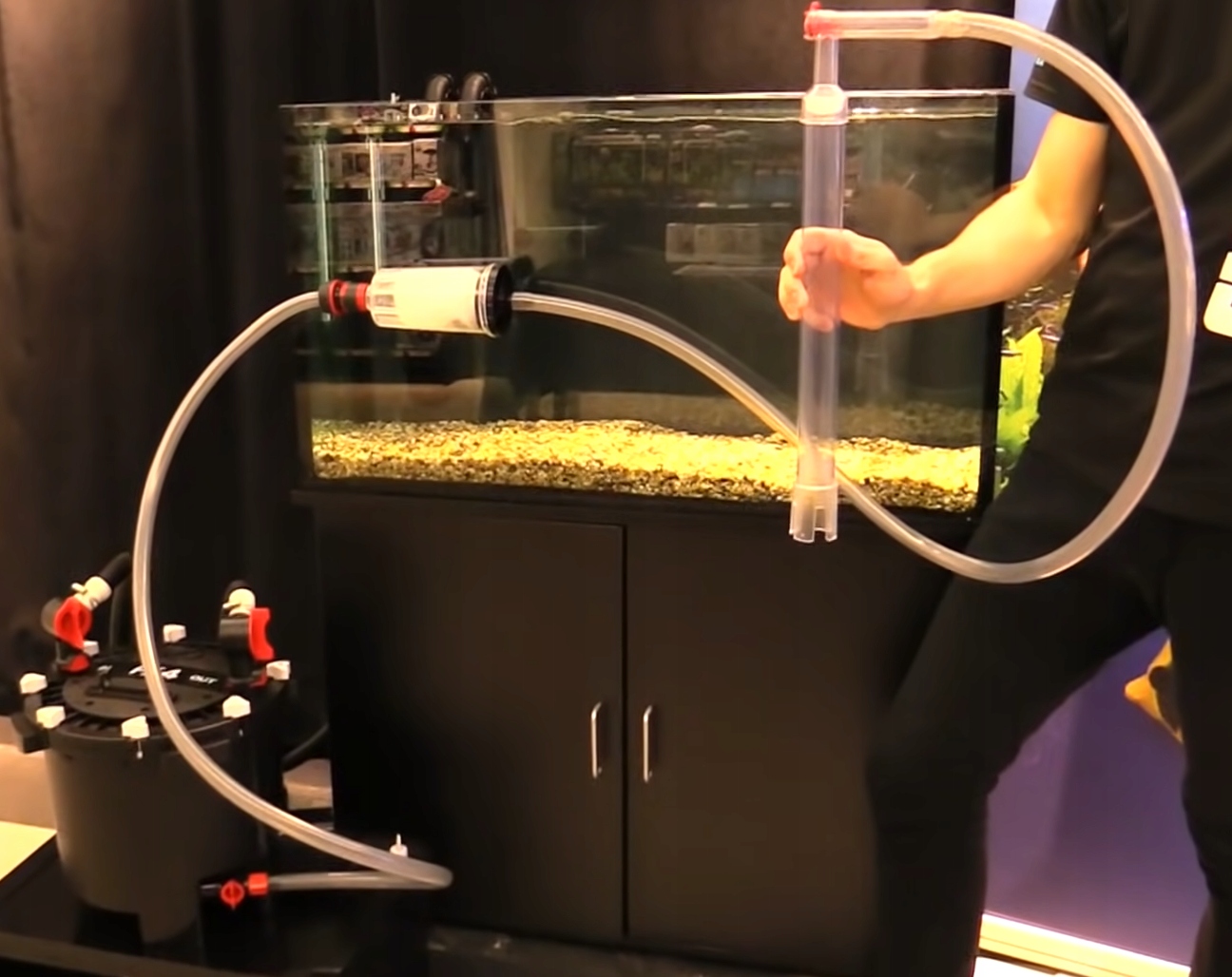 Використання цього пристрою дуже зручно, оскільки немає необхідності зливати воду за межі акваріума. Вода з домішками всмоктується у фільтр точно так само, як і в традиційному пилососі. Домішки осідають в пакеті, а відфільтрована вода повертається в акваріум. Таким чином, ми можемо осушити дно в будь-який момент, не потребуючи додаткової підміни води. Після очищення дна просто промийте сумку під проточною водою. Нам не потрібно повністю розбирати очисник після використання. Виробник оснастив кришку фільтра спеціальними затискачами, які полегшують зберігання шланга, не від’єднуючи його від відра.