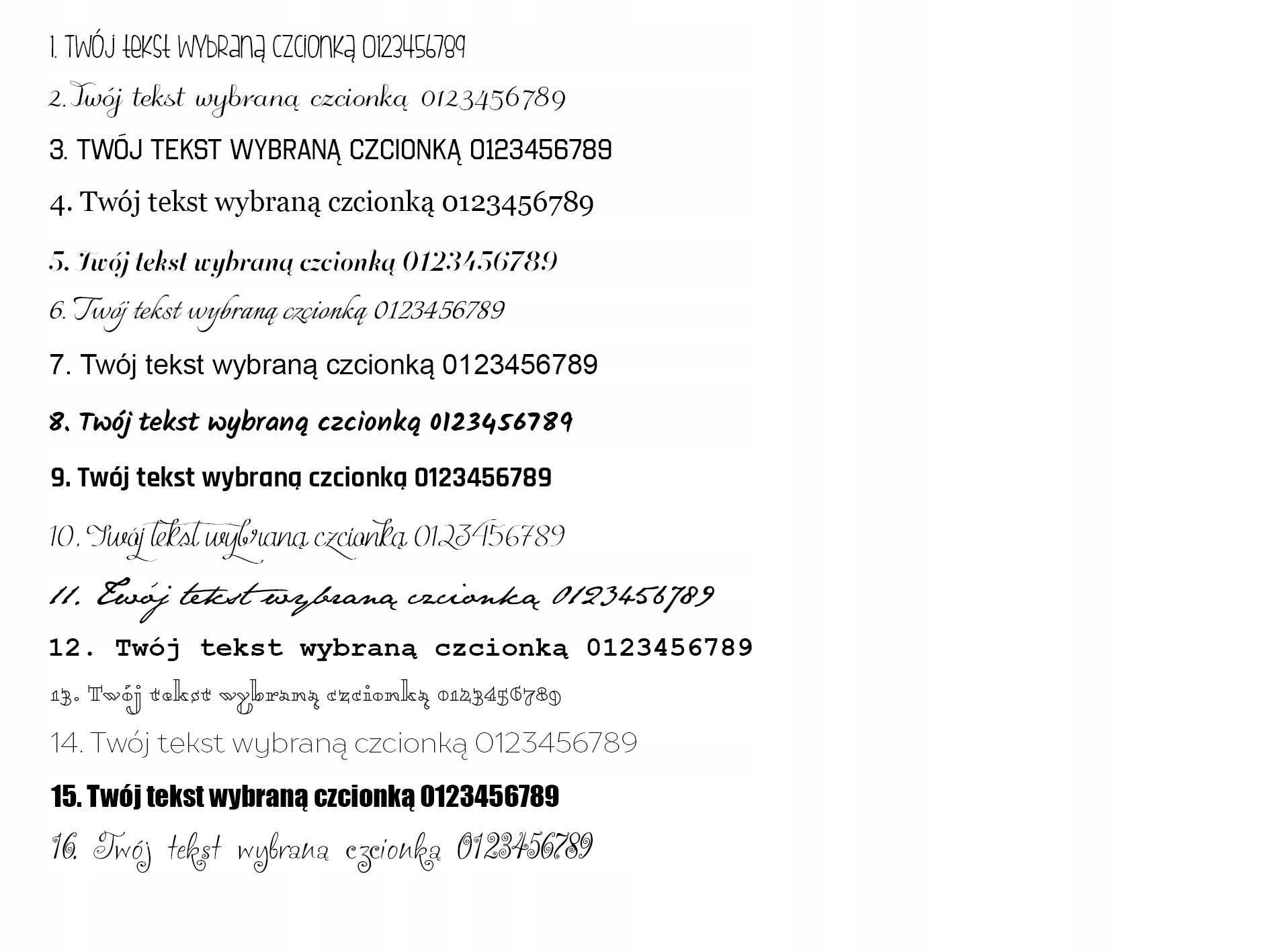 - лише текст, без графіки, один із наведених нижче шрифтів