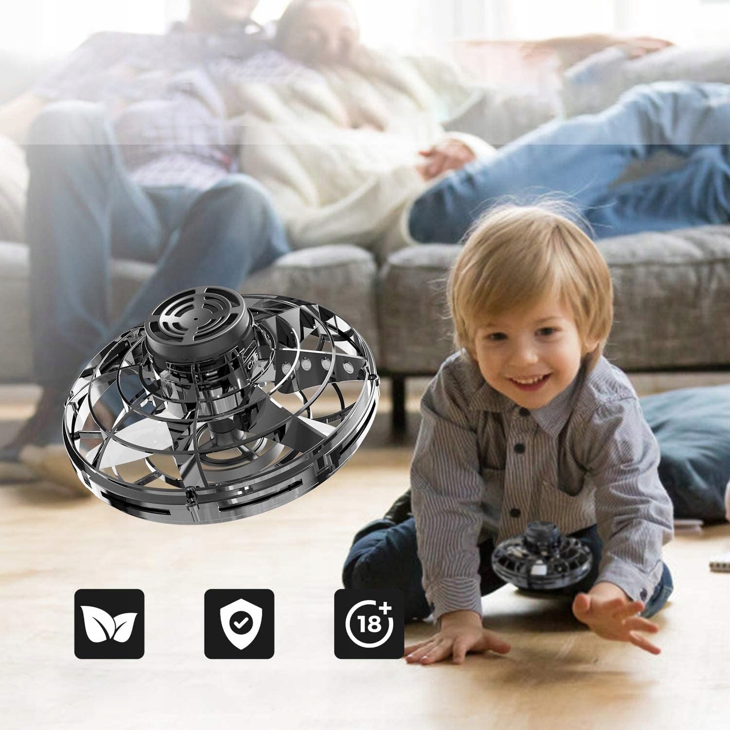 FLYING FIDGET SPINNER BLACK UFO LED DRONE