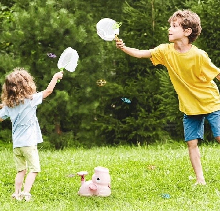 Іграшка для педальних ігор із різнокольоровими дисками в повітрі. Диски будуть парити в повітрі, а потім повільно падати. Рибальська сітка в комплекті.