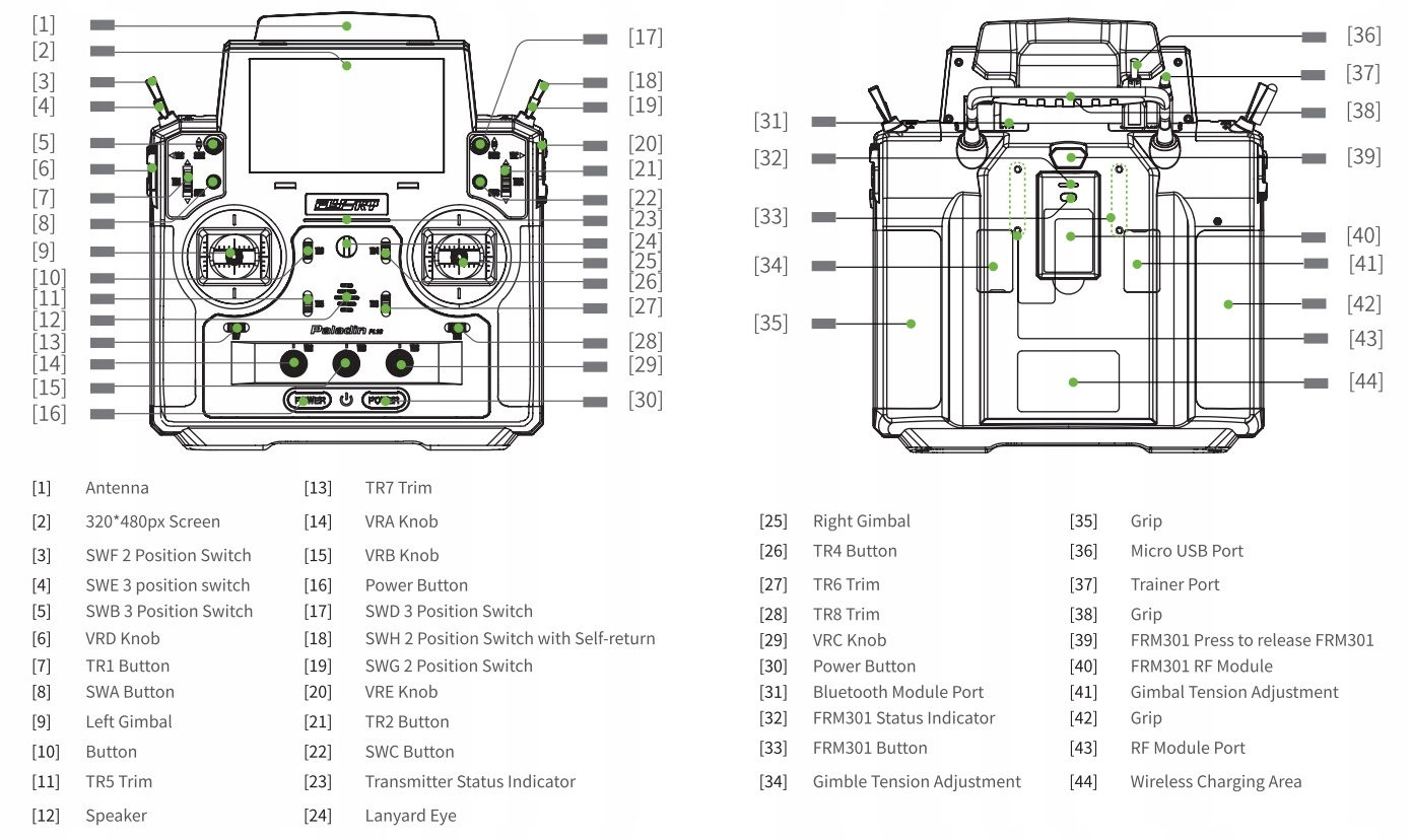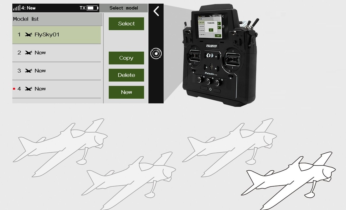 Новітнє обладнання від FlySky, розроблене для високочастотних характеристик і стабільності з сильними властивостями захисту від перешкод, з акцентом на конкурентоспроможність. Якісний корпус, кольоровий екран і підшипники кардана. Знімний високочастотний модуль і підтримка інших радіочастотних модулів. FlySky Paladin підтримує 18 каналів (в залежності від ресивера), має внутрішній AFHDS 3 і кольоровий дисплей FT HVGA 3.5, матрицю 320 * 480, підсвічування LCD білого кольору, ємнісний сенсорний екран (TBD). Вбудований порт USB дозволяє підключати обладнання до тренажера.
