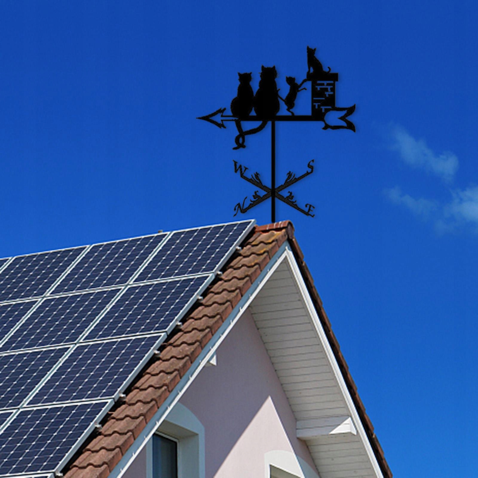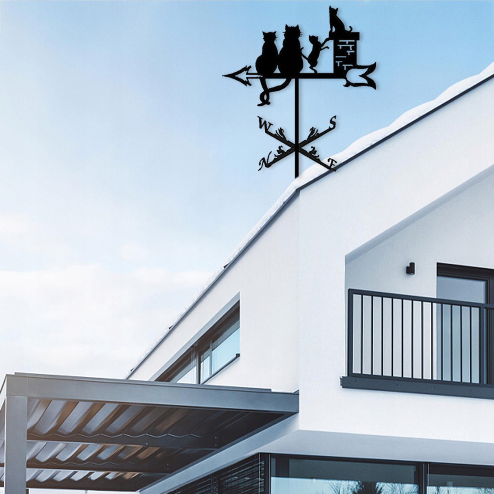 Флюгер у стилі ретро, вуличний стовп, професійний вимірювальний інструмент, кіт у саду