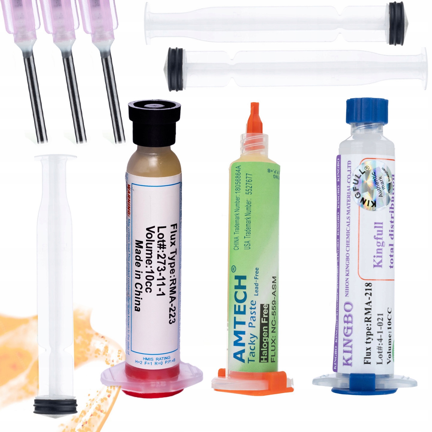 Флюс для паяння Rosfix RMA-223 з поршнем і голкою+флюс NC-559-ASM у шприці 10cc+флюс Kingbo 218 10cc у шприці