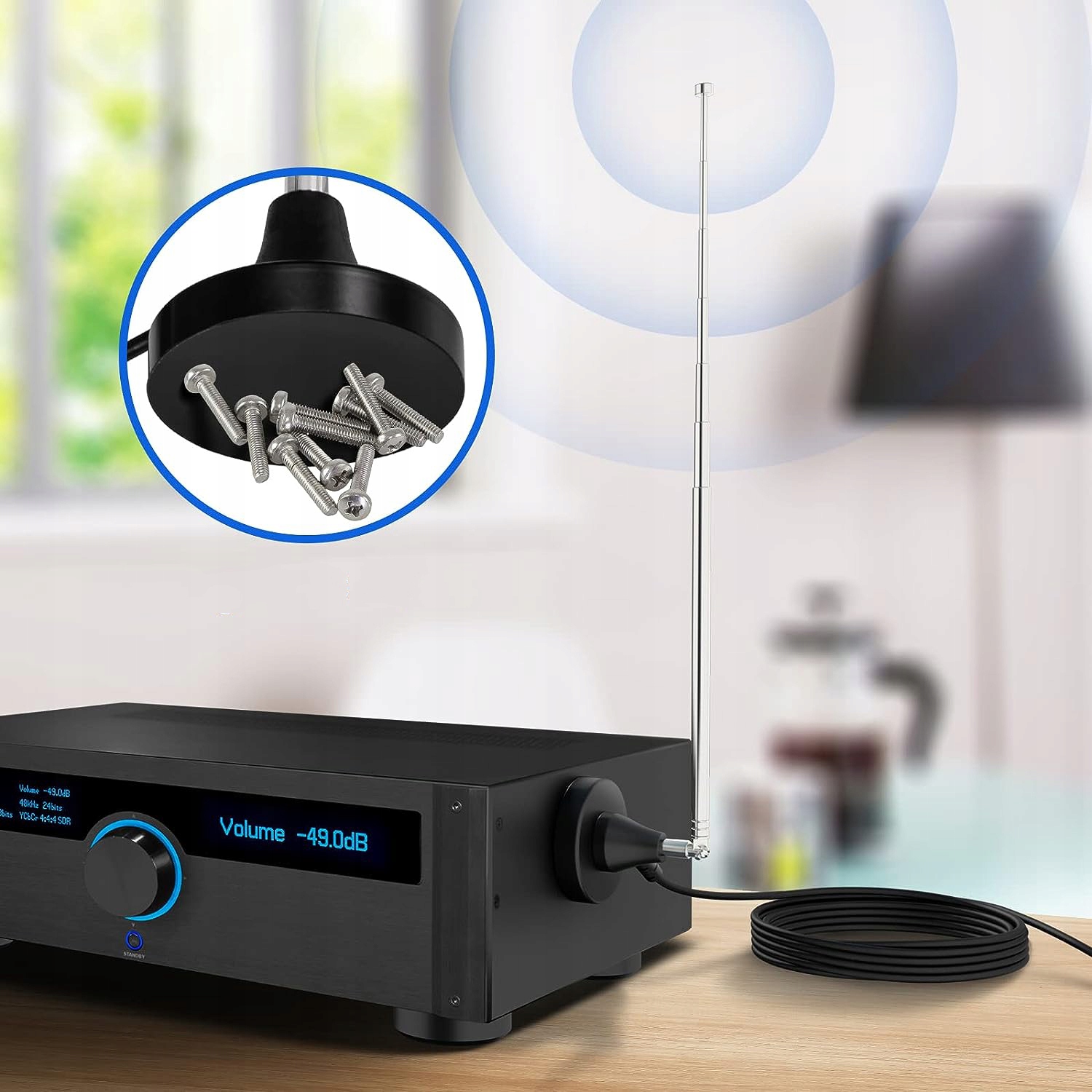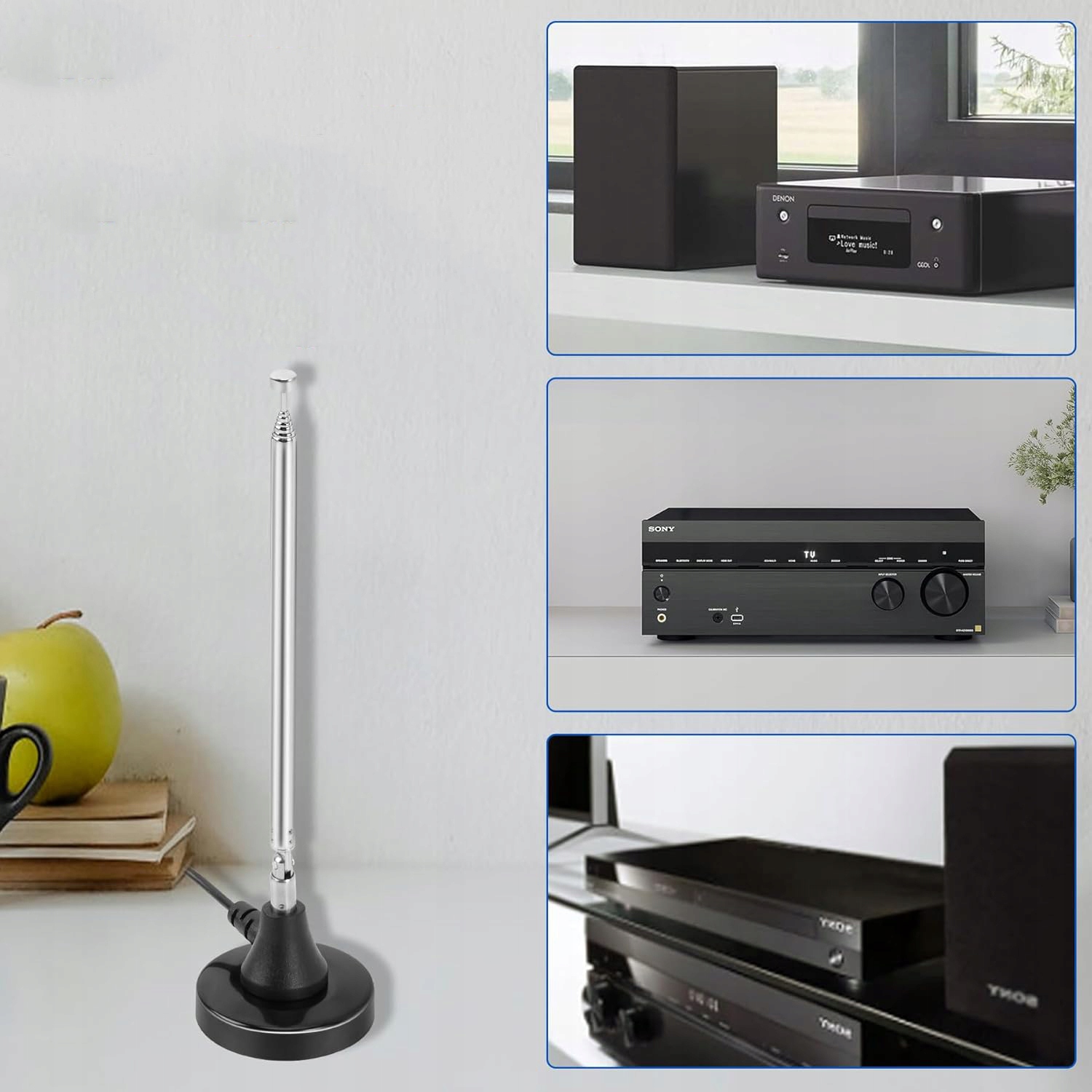 ✅【Універсальна сумісність】Сумісність із Yamaha, JVC, Sherwood, Pionier, Panasonic, Onkyo, Sony, Bose Indoor Sound Radio Home Stereo Audio Video. Обсяг поставки: 1 х антена, 3 х перехідник.