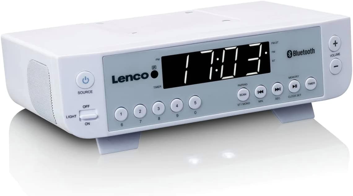 Lenco KCR-100 має 2 вбудовані динаміки, завдяки якому гарантована якість улюбленої радіостанції. Однак Lenco KCR-100 може запропонувати більше, ніж просто радіо. Завдяки Bluetooth®, ви також можете бездротово надсилати музику потоку з телефону або планшета, щоб ви могли слухати музику, яку ви хочете слухати в будь -який час. Годинник з таймером доповнює lenco KCR-100 .