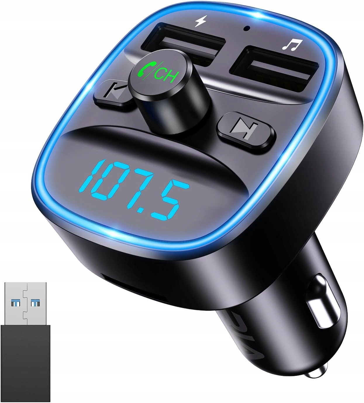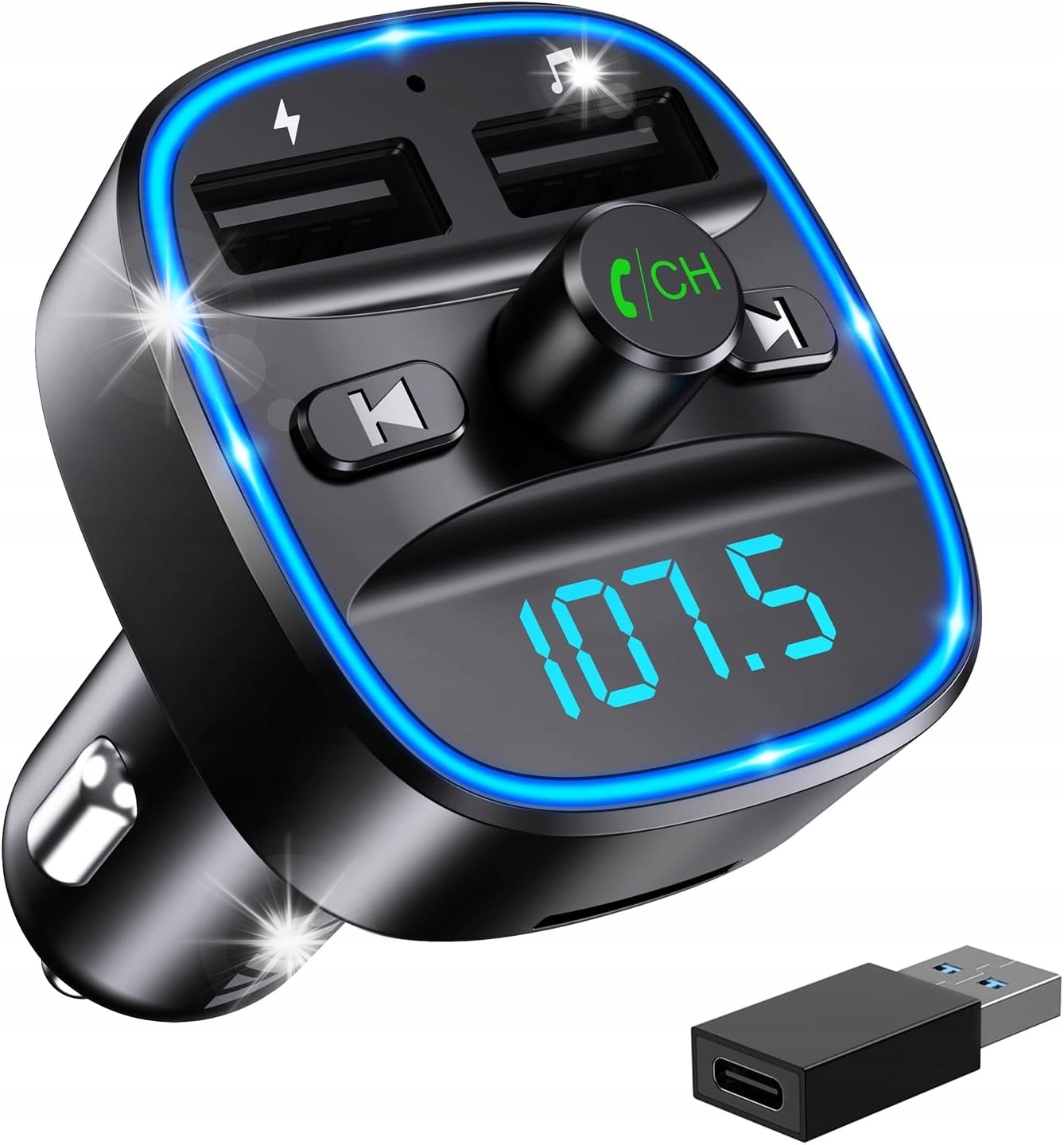 Передавач оснащений двома USB-портами (1 A та 2,4 A) для швидкої зарядки мобільних пристроїв і вбудованим мікрофоном із CVC шумозаглушенням, що гарантує чіткі розмови без луни. Крім того, кольорове світлодіодне підсвічування полегшує роботу в темряві, а індикатор напруги автомобіля дозволить стежити за станом акумулятора.