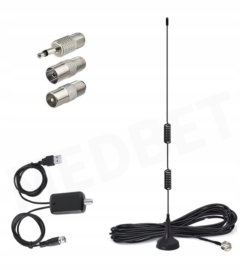 - В комплекті у комплекті підсилювач антени живиться через USB-порт (потрібен будь-який USB-зарядний пристрій)