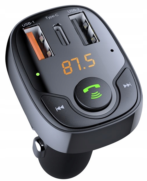 FM-передавач + автомобільний зарядний пристрій QC 3.0 + USB C 3A PD18W + USB 1 A