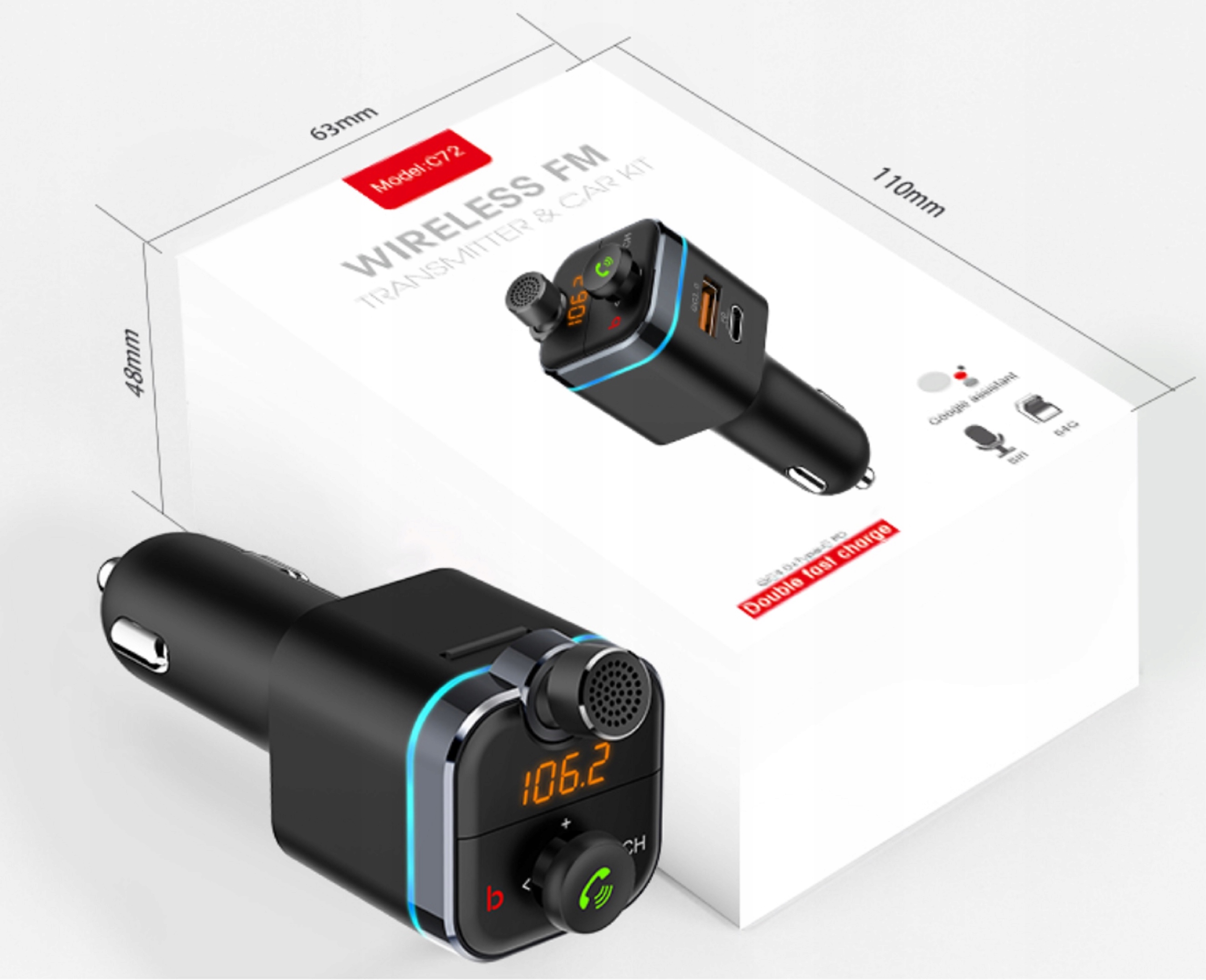 FM-передавач — це багатофункціональний пристрій чудово підходить для рук- безкоштовний комплект, але також завдяки тому, що ви можете відтворювати музику через Bluetooth і SD-карту, він також служить швидким зарядним пристроєм, вам не потрібно турбуватися про свій телефон, оскільки він завжди буде заряджений.