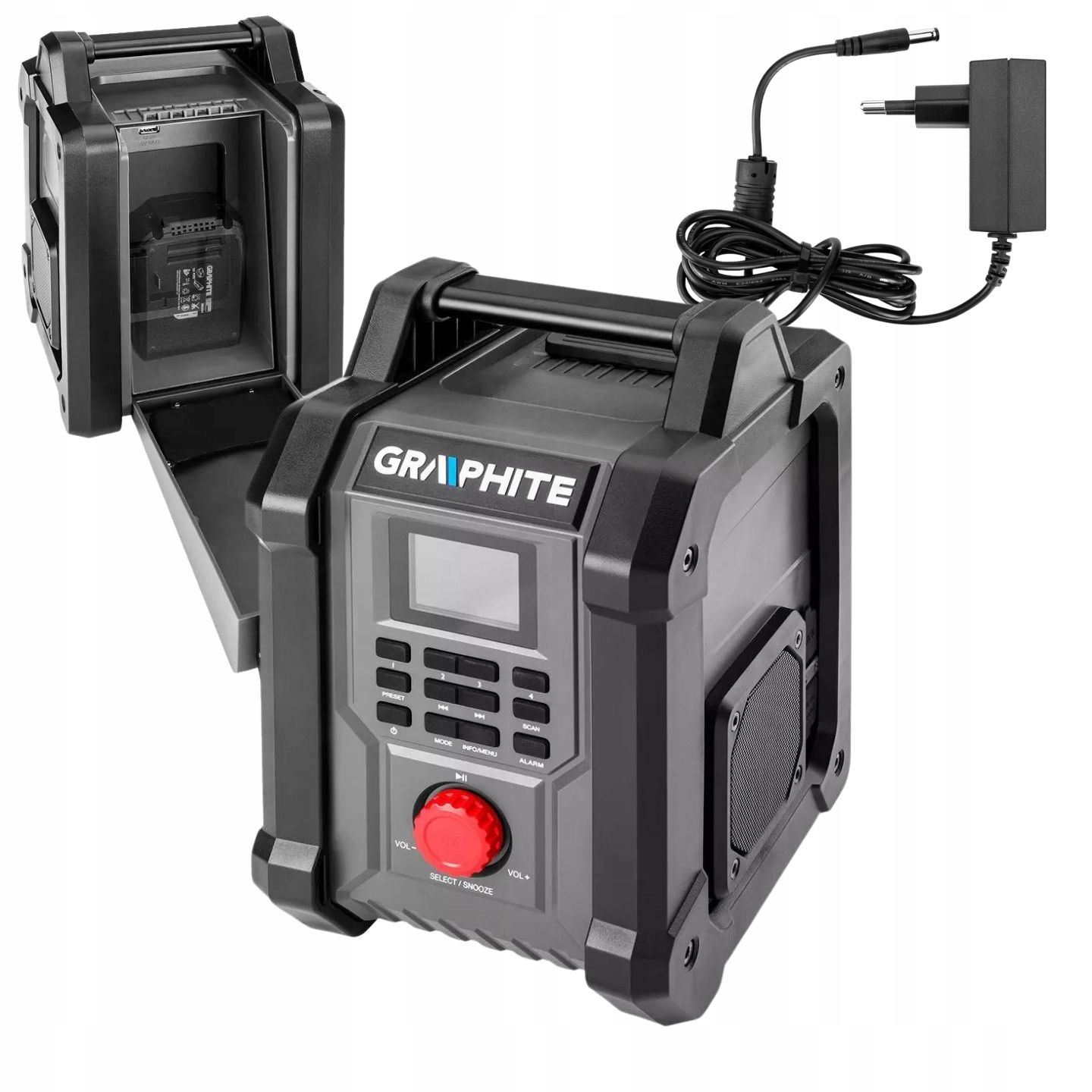Мережевий акумуляторний радіоприймач Energy + 18 V 58GE128 від GRAPHITE — це акумуляторний мережевий пристрій, оснащений 2 потужними динаміками по 15 Вт і роз’ємами USB і AUX. Ідеально підходить для використання на будівельному майданчику, у виробничому цеху чи в майстерні механізаторів.