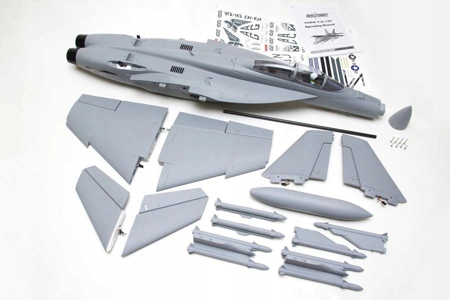 ROC HOBBY з гордістю представляє цей новий високодеталізований F/A-18F Super Hornet із 70-міліметровим приводом EDF. У моделі використано багато сучасних і передових конструктивних і монтажних рішень, таких як оптимізована болтова конструкція, встановлені на заводі кульові тяги та посилений лонжерон крила. Завдяки цьому Super Hornet швидко та легко збирається та розбирається. Варіант 70-мм F/A-18F Super Hornet, заснований на попередньому 64-мм F/A-18 Hornet, відрізняється багатими деталями, чіткими лініями, шасі підвіски, виготовленим на верстаті з ЧПК, і кабіною з кнопковим замком. У набір входять чотири комплекти наклейок, які дозволять вам створити власну версію Super Hornet і виділятися в аеропорту.
