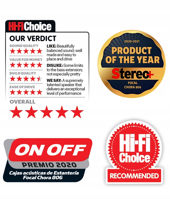 Найбільший брат Модель 806, Chora 826, отримала найвищу відзнаку в Європі – отримала головну нагороду EISA 2020-2021 у категорії «найцінніші домашні колонки у своєму ціновому класі».