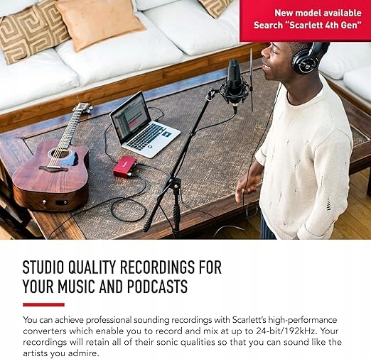 - Записи студійної якості для вашої музики та подкастів – ви можете отримати записи професійного звучання за допомогою високопродуктивних конвертерів Scarlett, які дозволяють записувати та мікшувати з частотою до 24 біт/192 кГц. Ваші записи збережуть усі свої звукові якості, тож ви звучатимете як виконавці, якими захоплюєтеся.