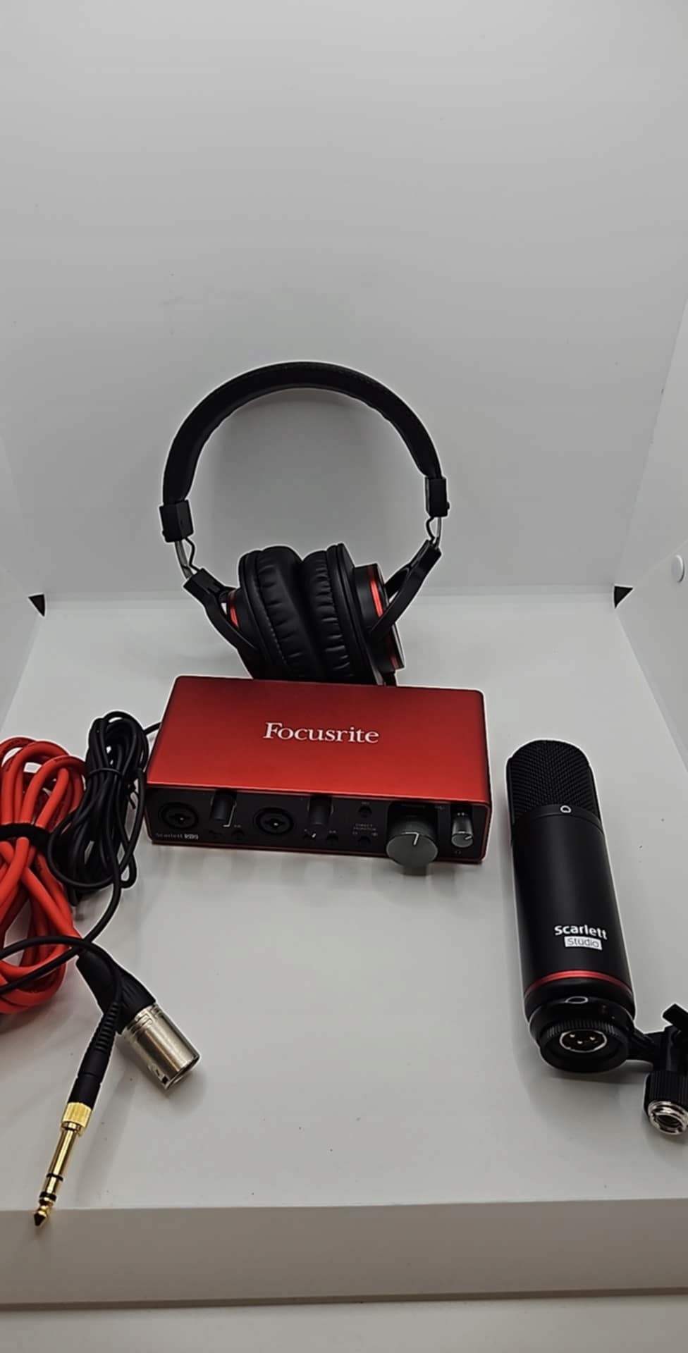 Ви не знайдете кращого звуку чи краще оснащеного пакета запису. Scarlett Solo Studio — це комплексне рішення, яке надає співакам і авторам пісень простий процес запису. Відразу з коробки ви отримуєте USB-аудіоінтерфейс Scarlett Solo, конденсаторний мікрофон, 3-метровий мікрофонний кабель XLR, закриті навушники. Безкоштовне програмне забезпечення дозволяє миттєво створювати музику.