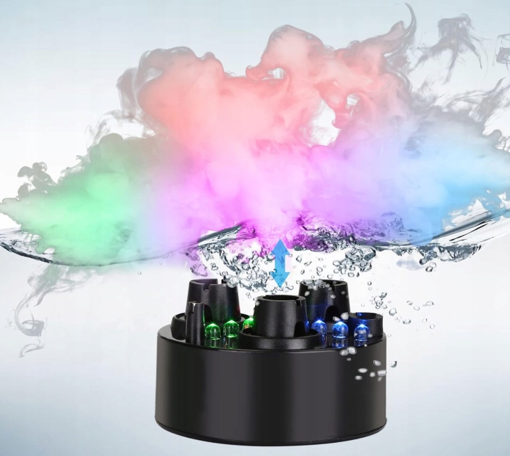 Завдяки високій ефективності 1750 мл/год і вбудованому світлодіодному освітленню RGB пристрій швидко покриває поверхню води щільним атмосферним туманом.