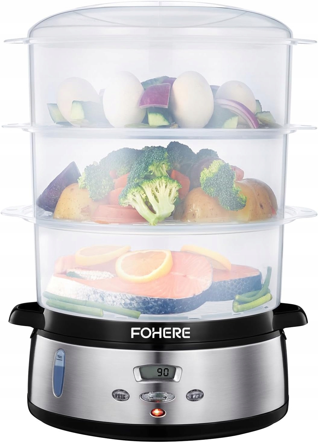 FOHERE Пароварка 800 Вт Електрична 9 л LCD таймер 90 хв 3 кошики