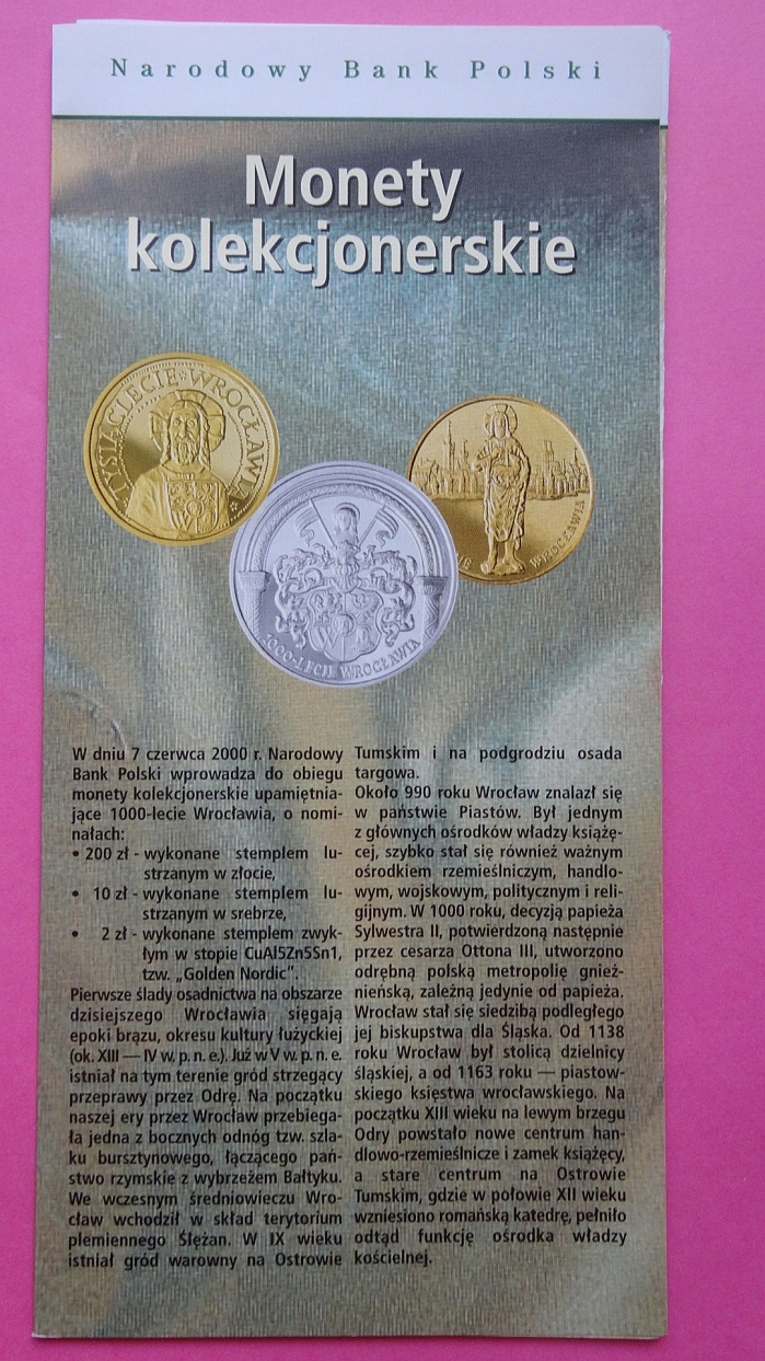 Folder 10 zł 2000 WROCŁAW-1000 LAT,stan I