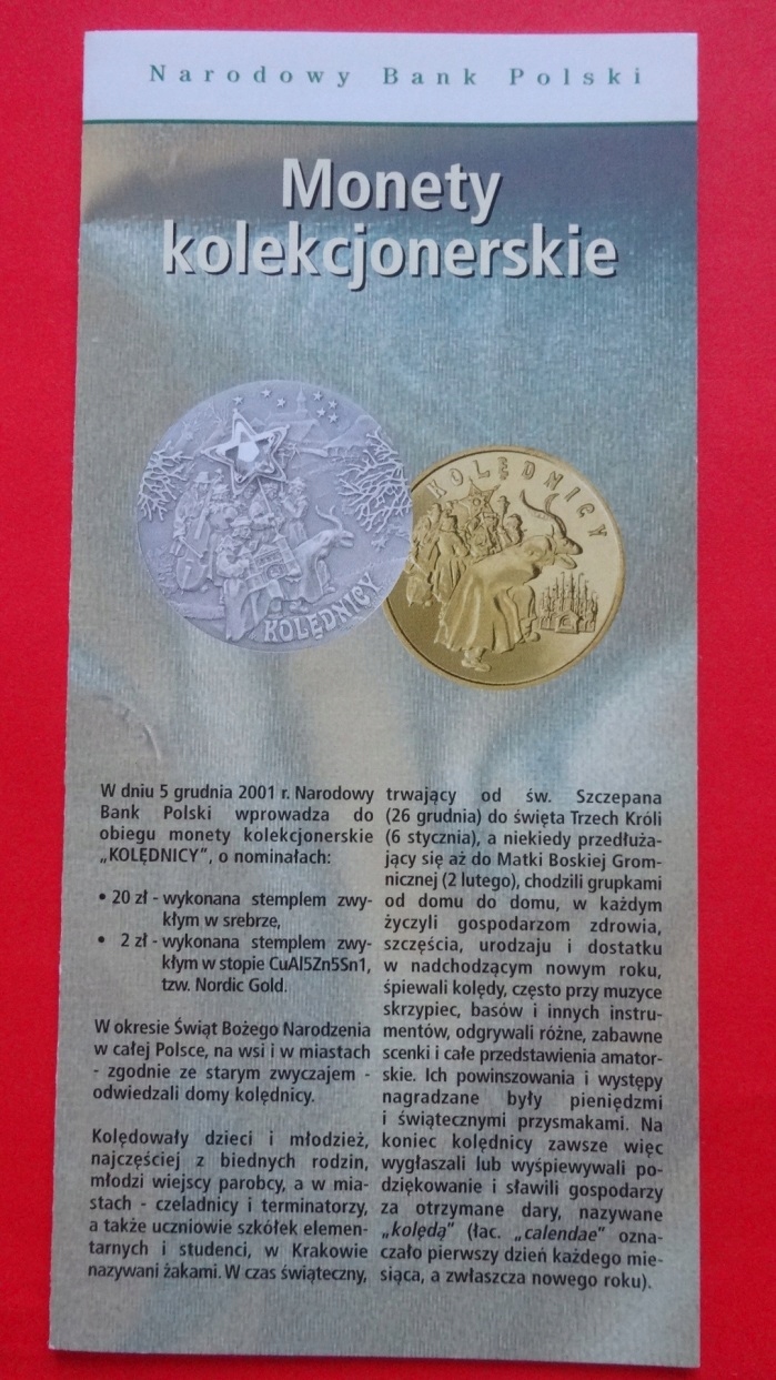 Folder 20 zł 2001,KOLĘDNICY,stan I/I-