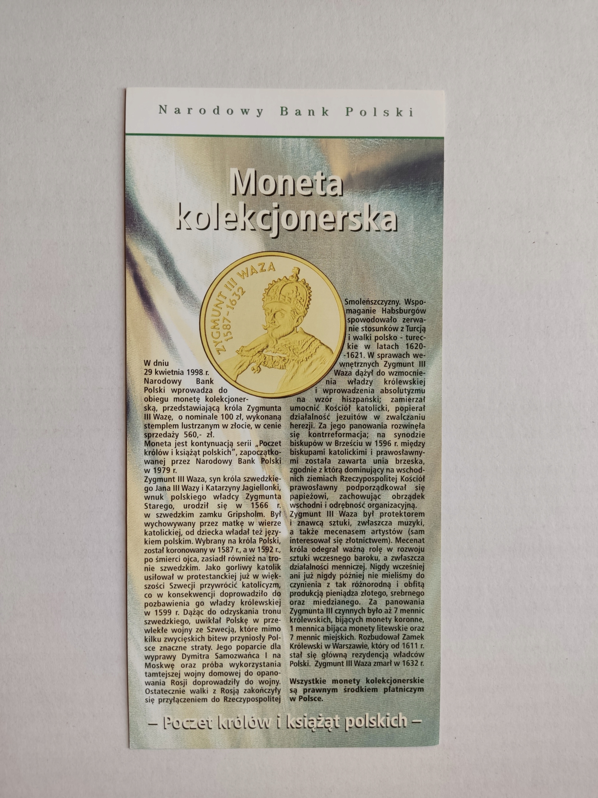 Folder NBP 1998 Zygmunt III Waza j. polski