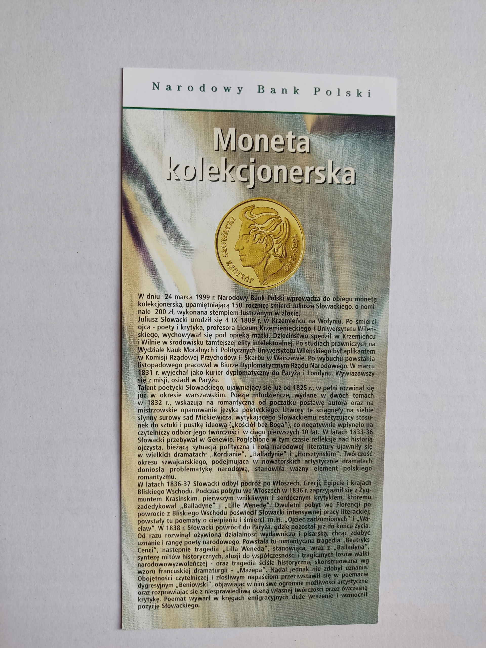 Folder NBP 1999 150.rocznica śmierci Juliusza Słowackiego w j.polskim