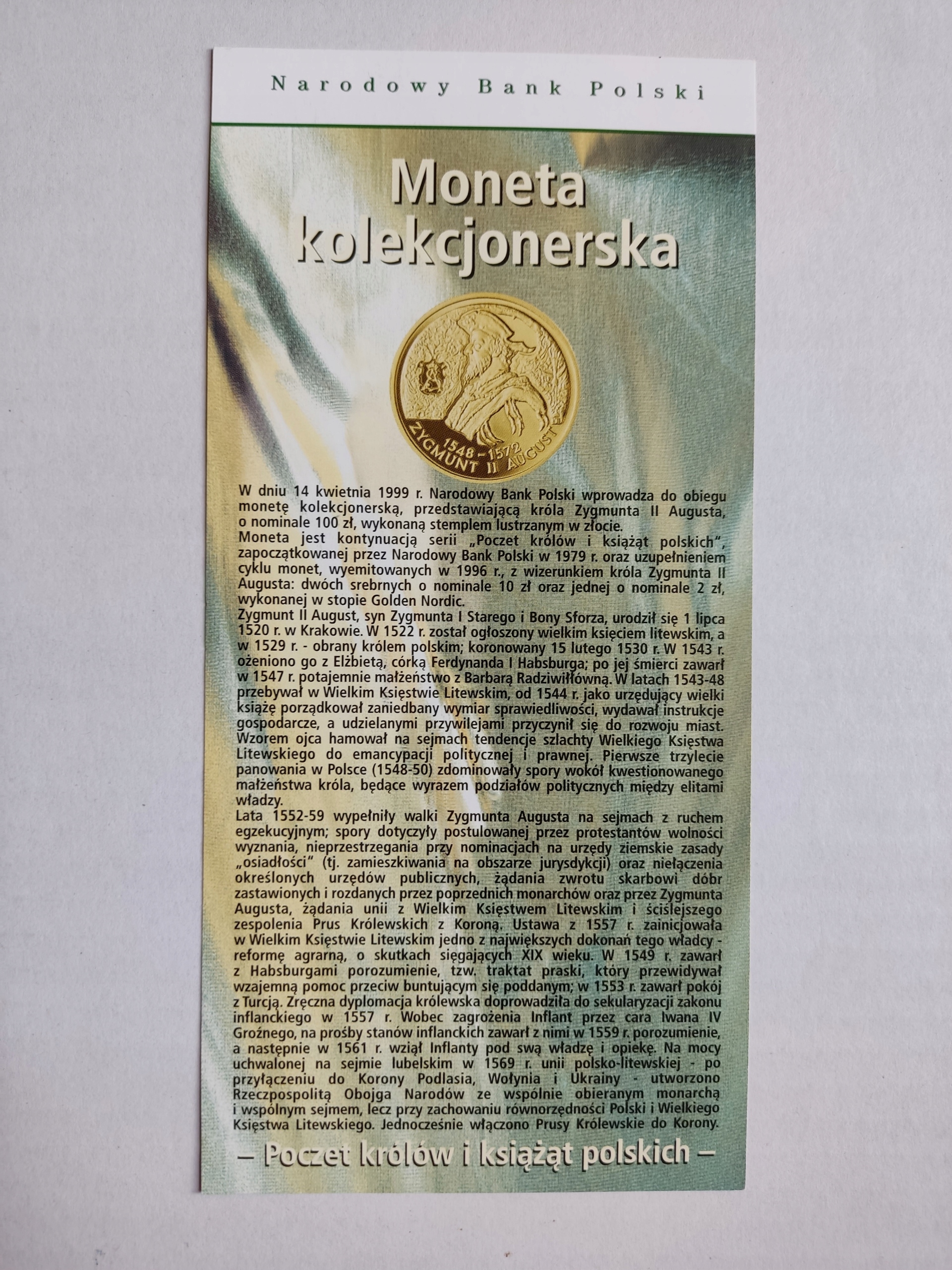 Folder NBP 1999 Zygmunt II August w j.polskim