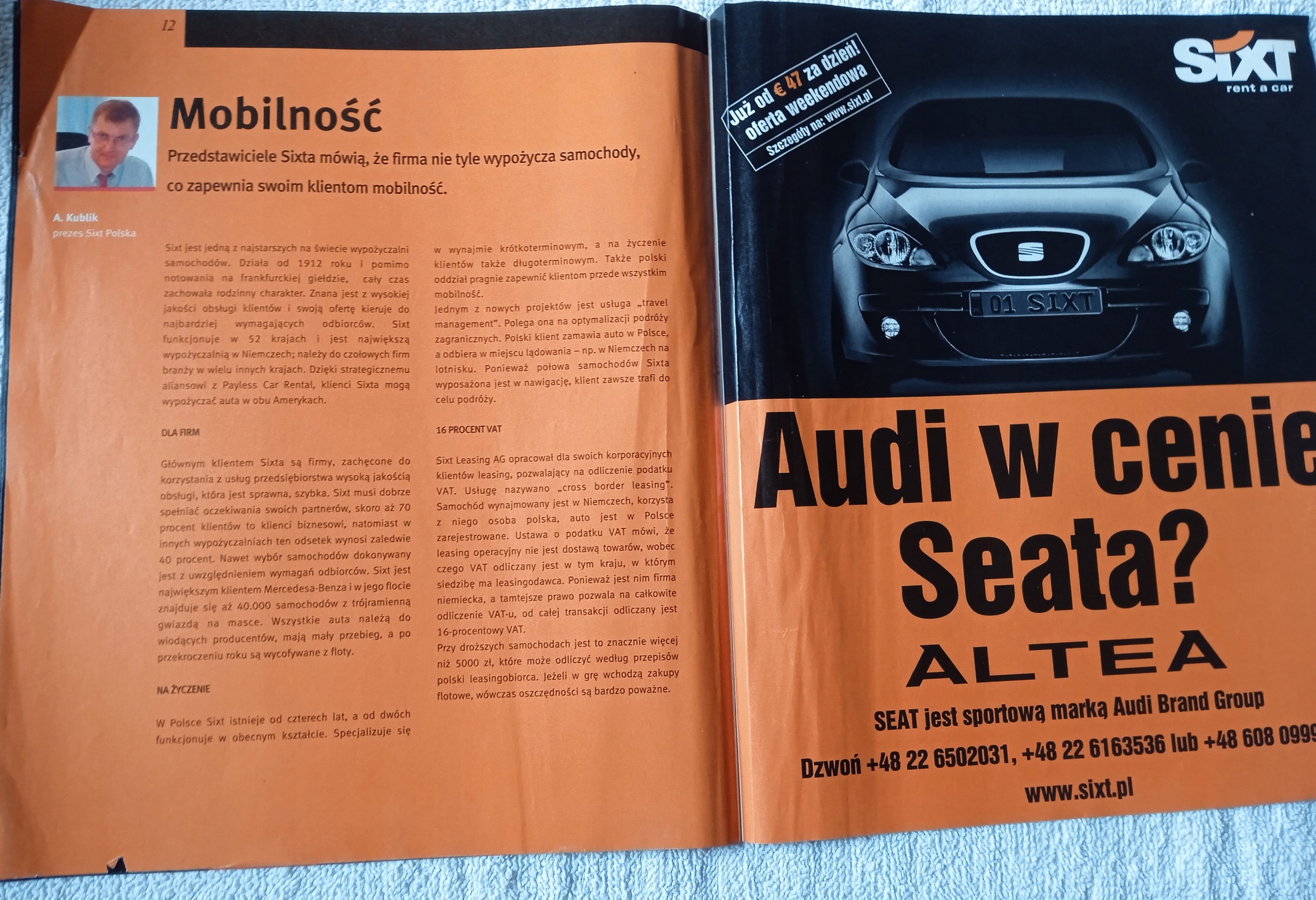Folder reklamowy -Nowy Seat Altea, dodatek promocyjny Rzeczpospolitej. 2000