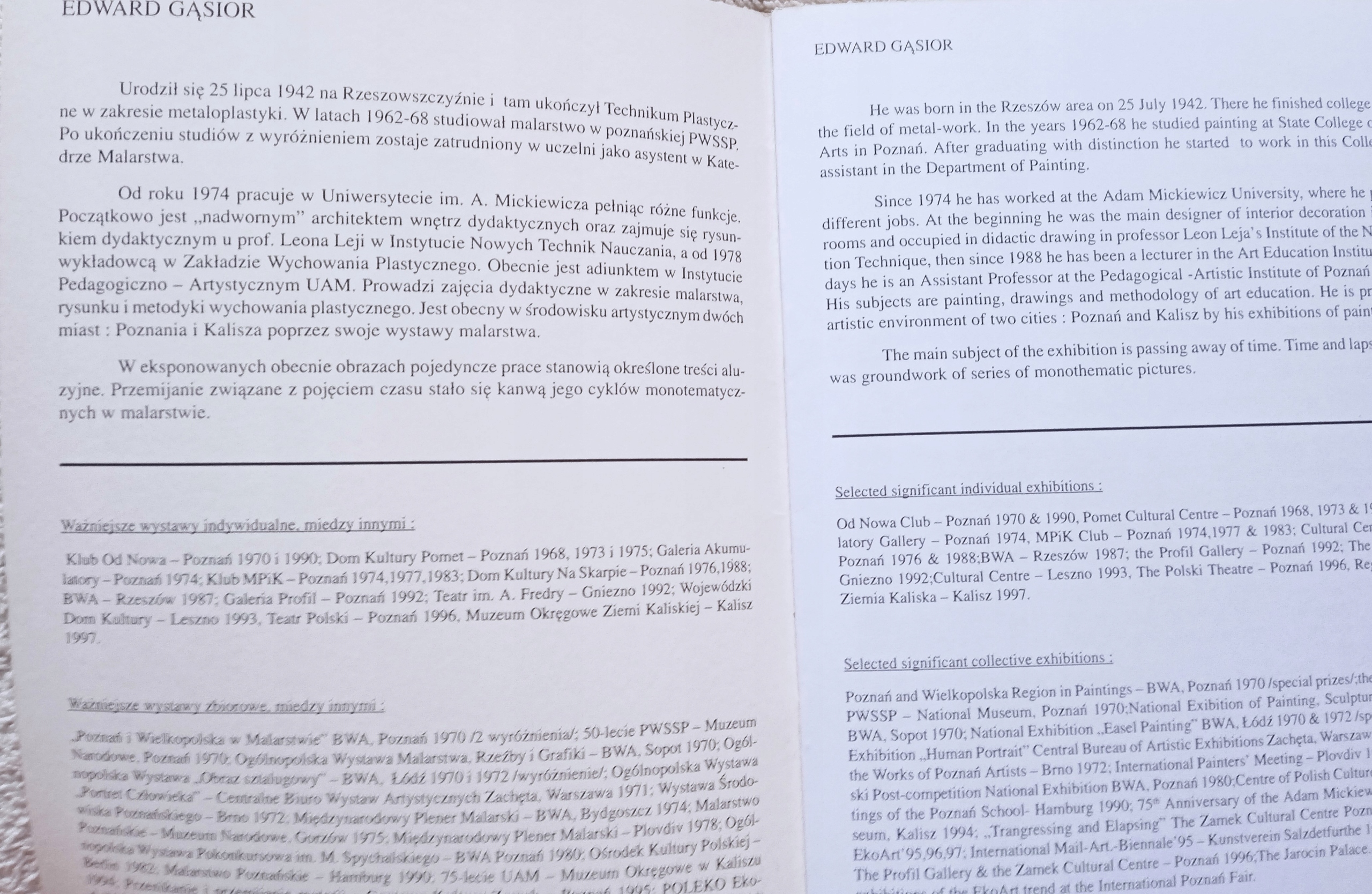 Folder wystawy : Abstrakcja aluzyjna. Edward Gąsior. Kalisz 2001.