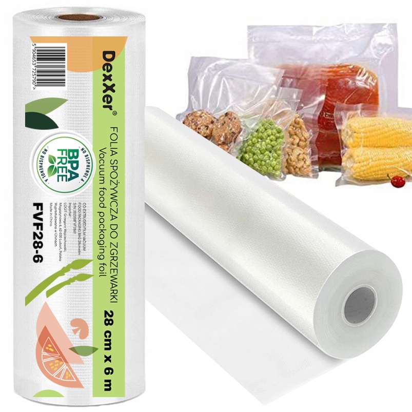 Безпечна для харчових продуктів фольга підходить для багатьох моделей вакуумних пакувальників. Ідеально підходить для зберігання їжі. Це дозволяє довше залишатися свіжим і не допускає проникнення запахів різних продуктів, що зберігаються разом. Підходить для м'яса, риби, сиру, а також овочів і фруктів.