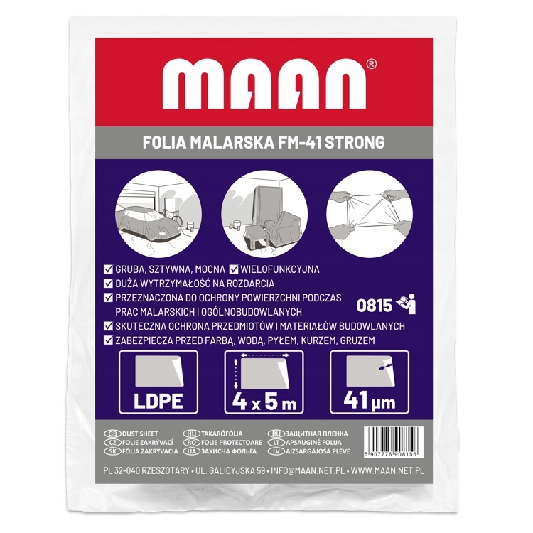 Приобретая «ПРОЧНАЯ ТОЛСТАЯ малярная пленка Maan 5 м x 4 м x 41 мкм» данный товар из каталога «Малярные пленки» вы можете быть уверены, что после оформления заказа, доставки в Украину, вы получите именно то, что заказывали, в оговоренные сроки и европейского качества.