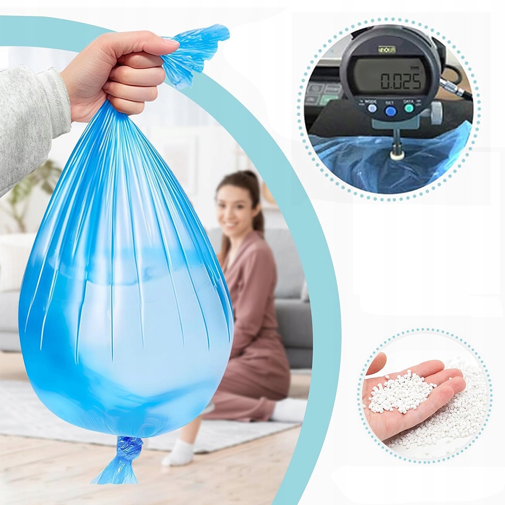 Виготовлена з надміцного матеріалу товщиною 0,025 мм, стійкого до проколів, витримує вагу до 2 кг без протікання та тріщин. Кожен рулон має довжину 4,5 метра (14,76 фута) і ширину 26 сантиметрів (10,24 дюйма), що вміщує до 280 підгузників (залежно від розміру підгузника). Примітка: це пакет для поповнення; оригінальна упаковка не входить.