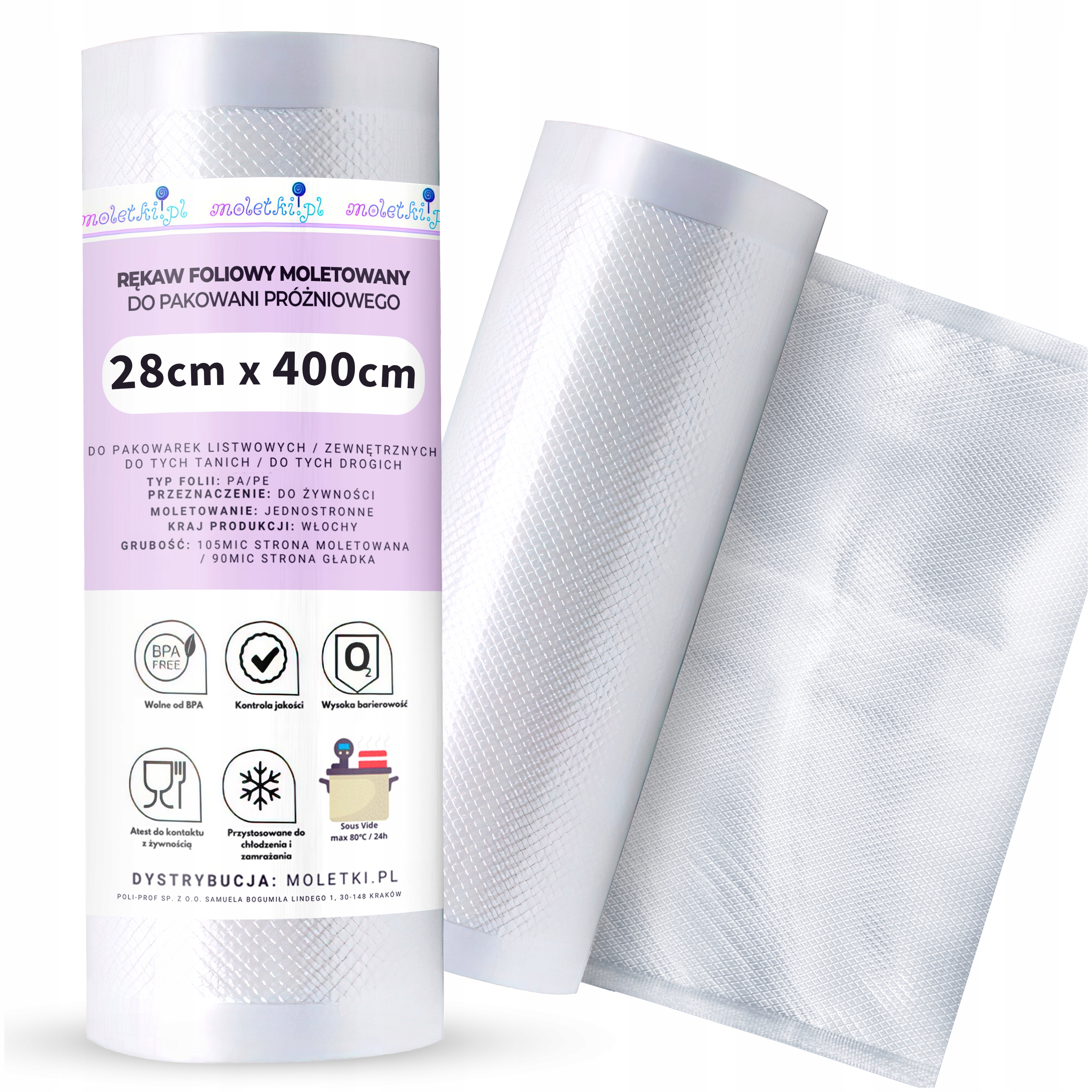 Наші рифлені фольги товщиною 105 мкм є одними з найміцніших пакетів для вакуумного пакування на ринку.
